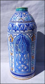 MOTROB Orange Flower Water Bottle Hand Painted Ceramic Fez Morocco Large