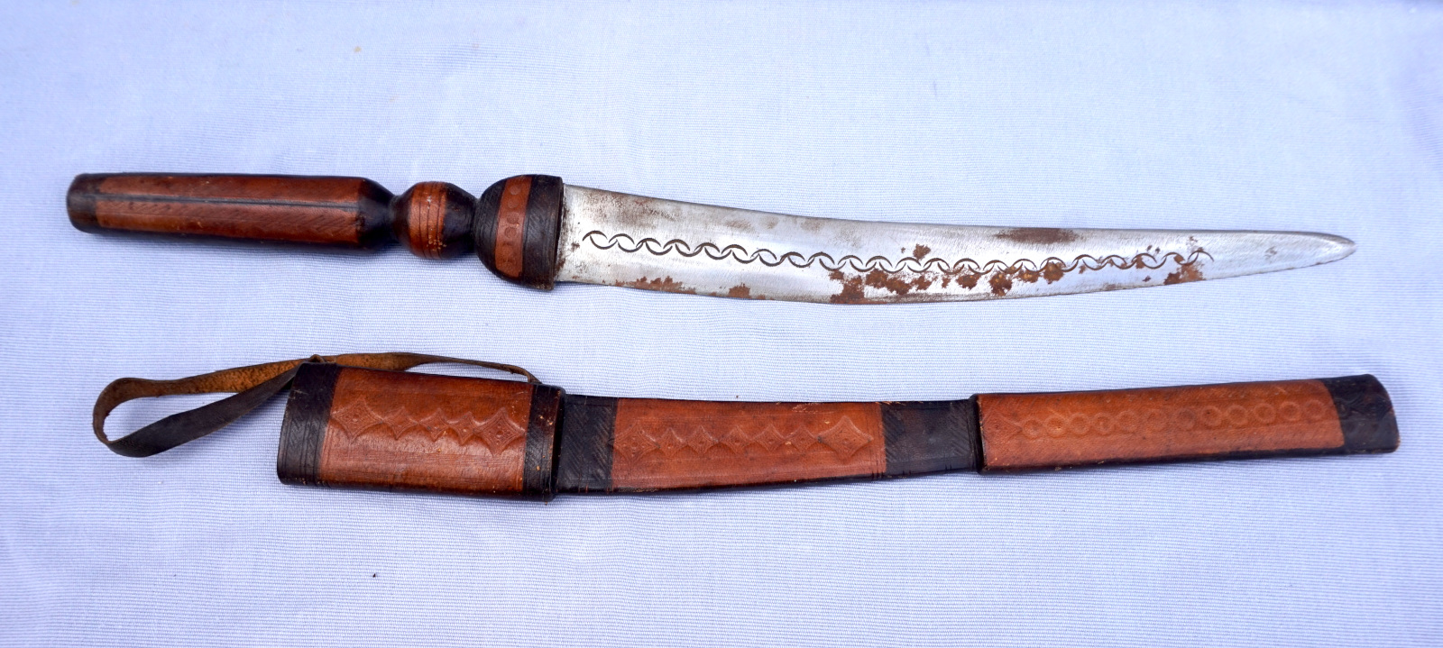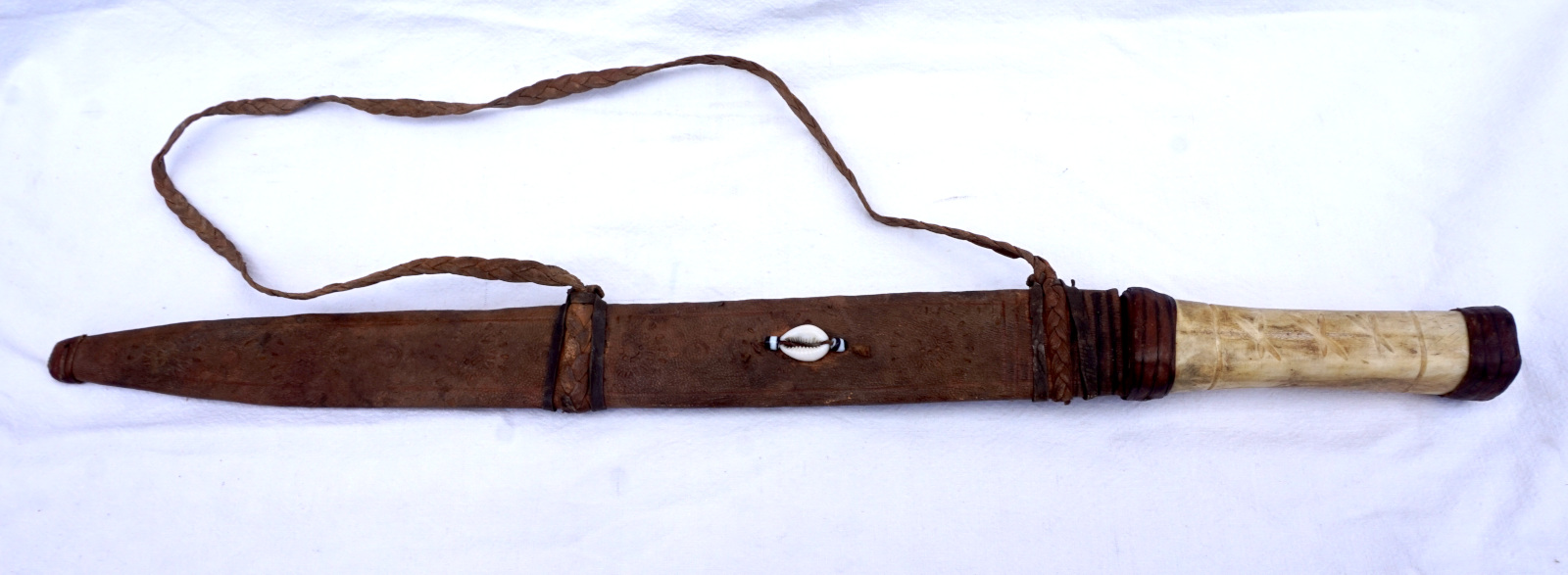 African Touareg Large Dagger Bone handle Leather Scabard Cowrie