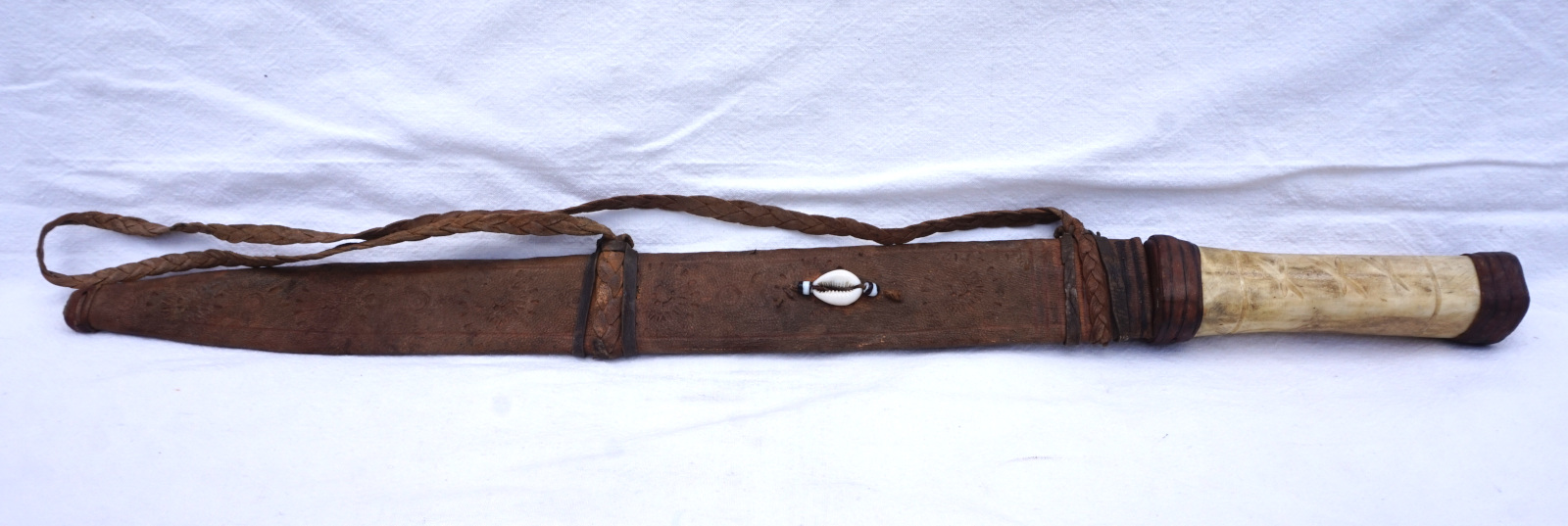 African Touareg Large Dagger Bone handle Leather Scabard Cowrie