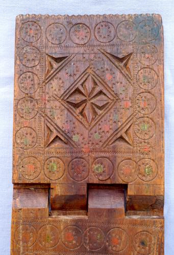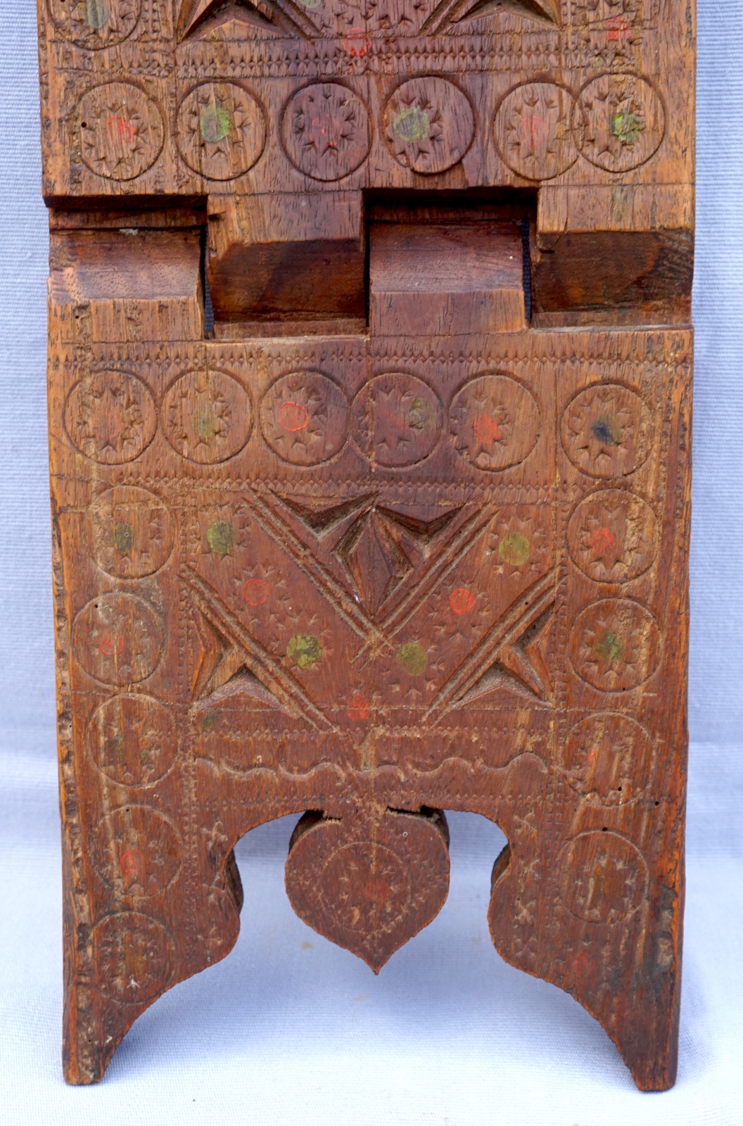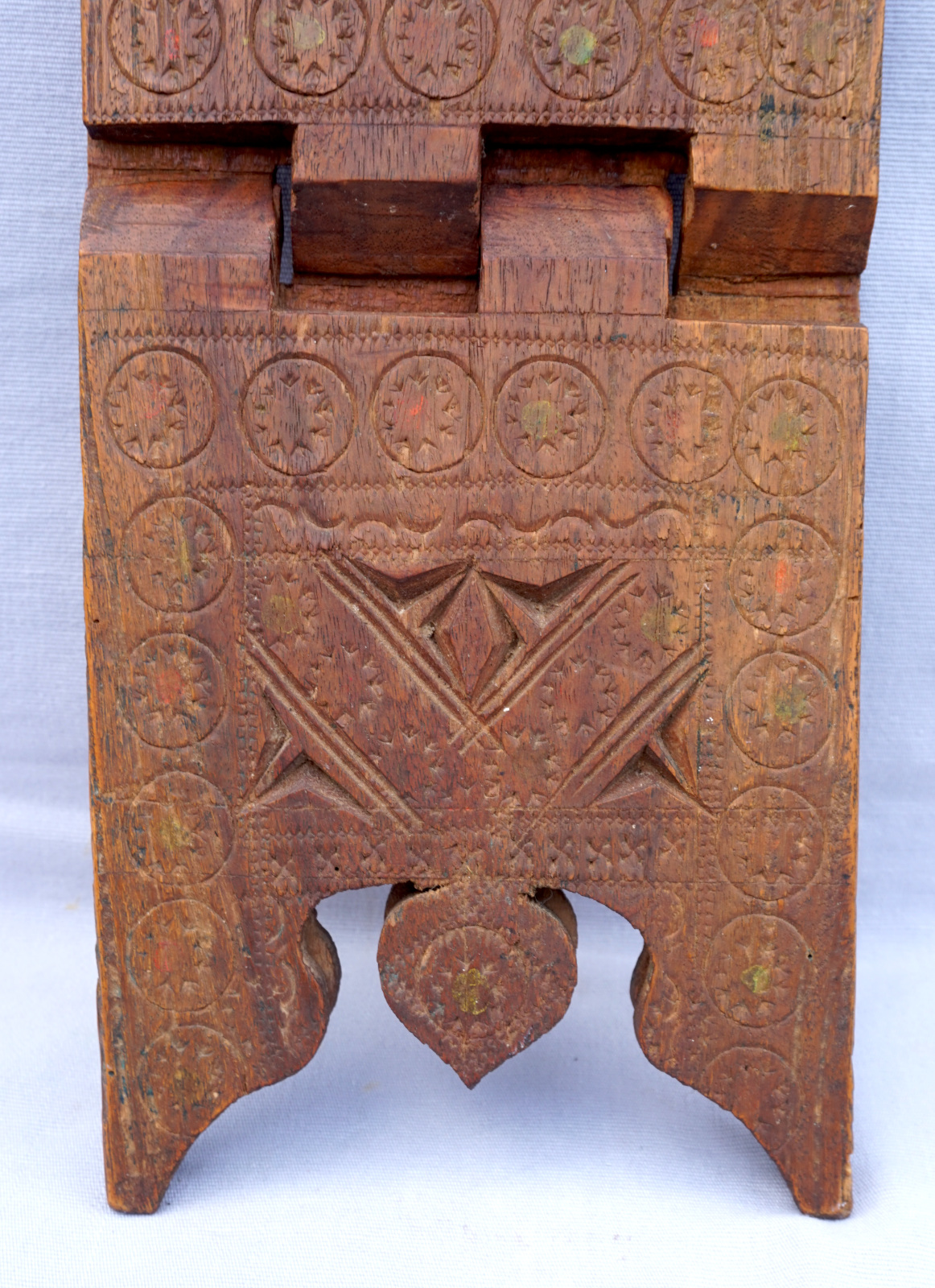 Antique Quran holding holder stand in polychrome carved wood made in India during the 19th century. It measure open: 13 1/4" (33.5cm) width, 8 1/4" (21.5cm) height, 6 1/8" (15.5cm) depth. Beautiful condition