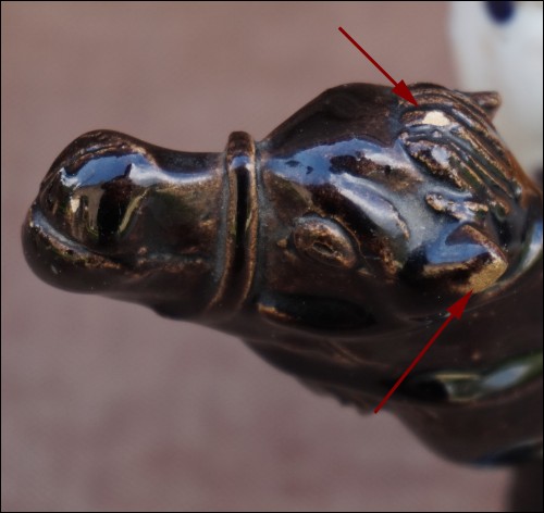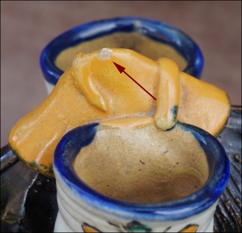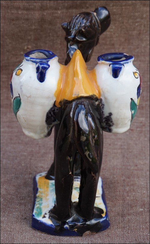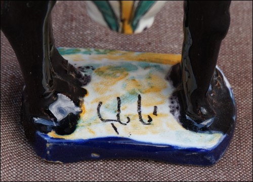 Art Deco camel or dromadery with 2 vases ceramic statue made by Louis Tissier in Nabeul Tunisia during the 1930's. It's signed on the base. 5 7/8" height 5 1/8" length 3 1/2" width. Good condition a few tiny glaze shortages as presented on the following pictures.