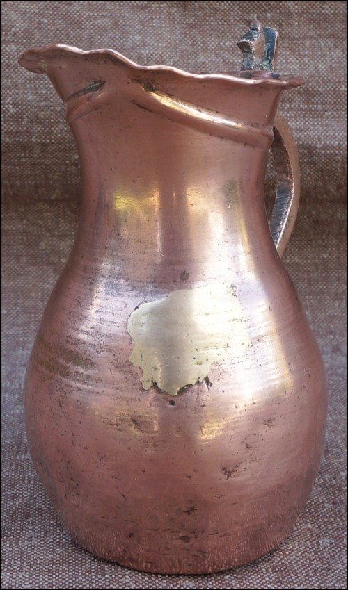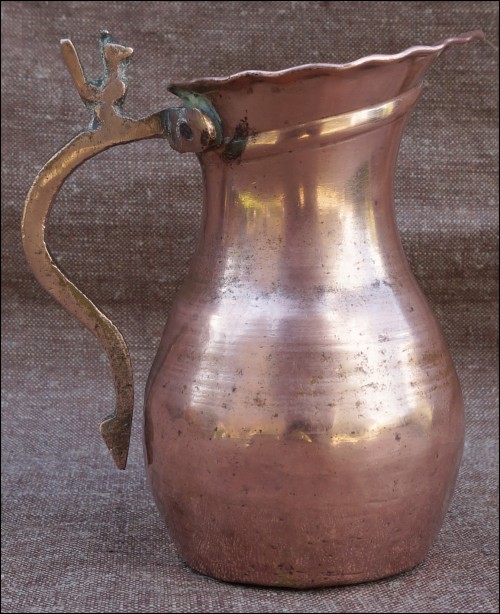 Antique Islamic iranian copper jug with stylised persian seljuk bird made during the 17/18 th century.Good condition no damage no hole. 5 3/4" high.