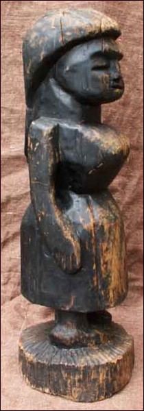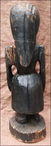 Hand carved missionary sister Tiki statue made in Polynesia during the 1920's. Good condition only small worn due to its great age. 23 3/4" high.
