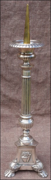 Large 29 1/2 Altar Candlestick French Silverplate Brass