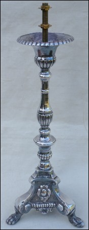 Large Altar Candlestick Lamp Brass Silver Plated 1910