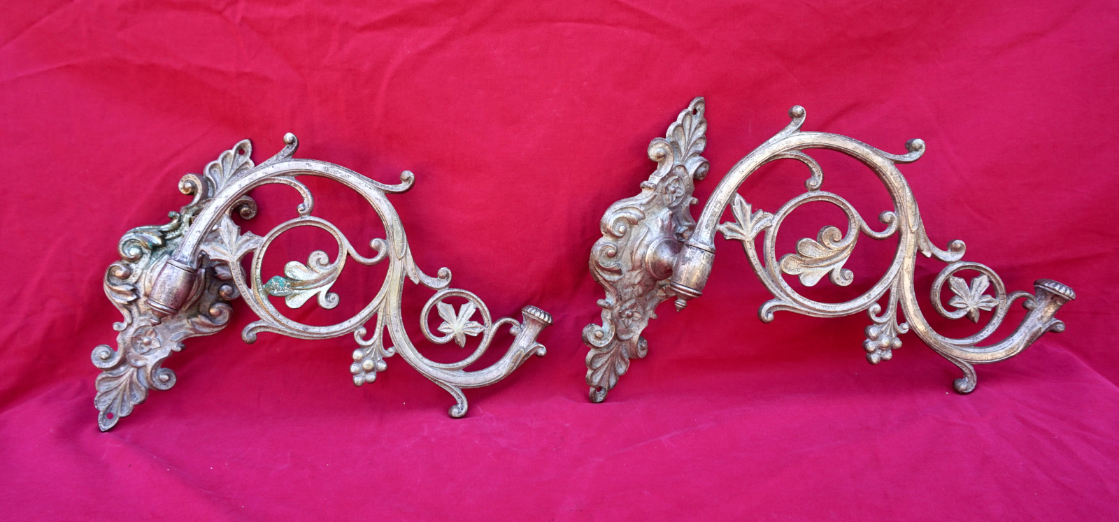 Gothic style Pair Wall Sconces Grapes Foliage Church Chapel 1880's