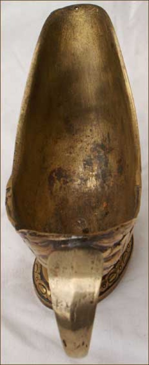 Antique incense boat in bronze made during the 18th century. A handle of spoon has been added for gripping. Good condition the spoon is missing.4⅛" high 7⅞" length 2½"width.