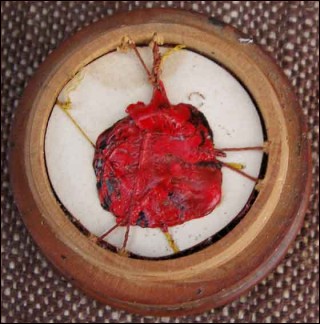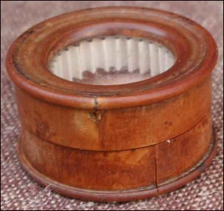 Sainte relique du vénérable Jean-Gabriel Perboyre, 1843. Prêtre lazariste, martyrisé en Chine au XIXème siècle. Dans un boitier en buis, née pour la déclaration de vénérable par le Pape Grégoire XVI. Saint Jean-Gabriel Perboyre est le premier martyre de Chine canonisé. bel état. Diamètre 3.7 cm, hauteur 2 cm.