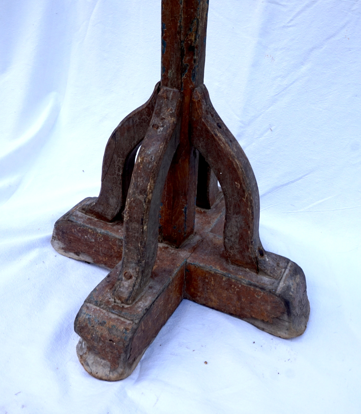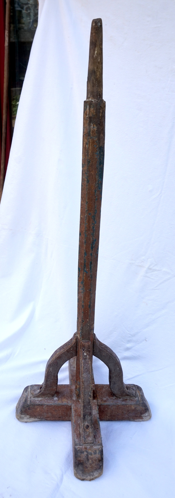 French wooden processional cross base stand made early 19yth century. 39 3/8" (110cm) height, 13 3/4" (34cm) by side to the base, weight 11lbs (5 kilograms). Good condition.
