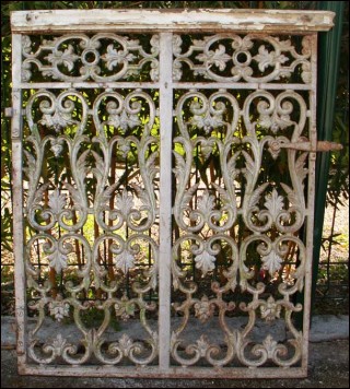 Antique pair of altar doors in wrought iron made around 1680 during the reign of Louis the 14th. The wrought iron is surrounded with iron frame including grating and part of lock. Good condition only the wooden handrail need to be removed. 51"3/4 length 32"1/4 high.