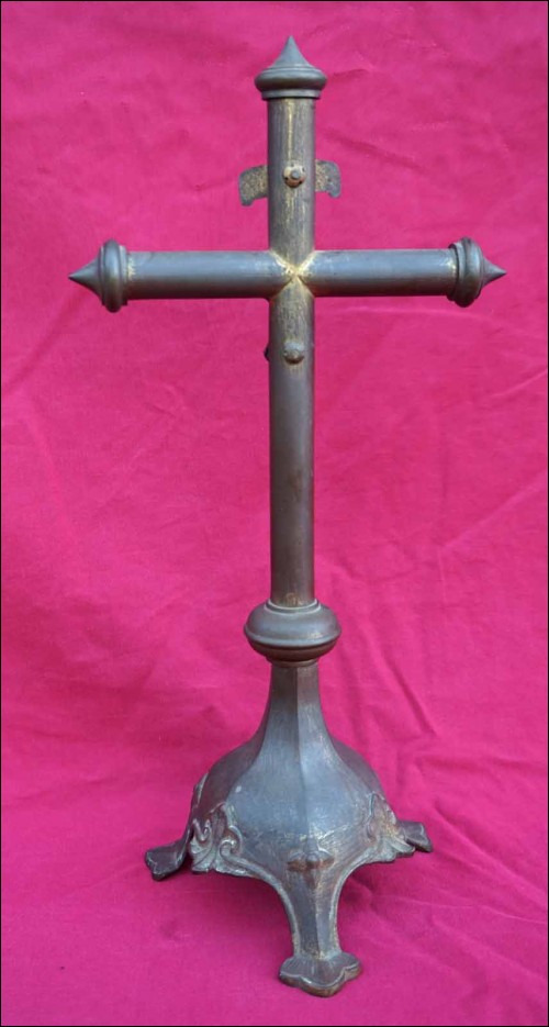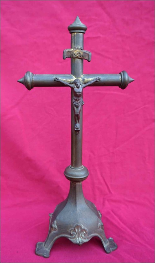 Gothic Altar Crucifix Christ Gilt Brass Tripode Base 19th C