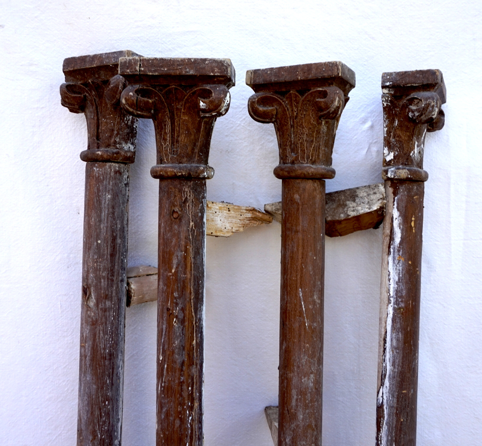 Gothic Carved Wood 4 Columns Set Chapel Large 61" Late 19th C