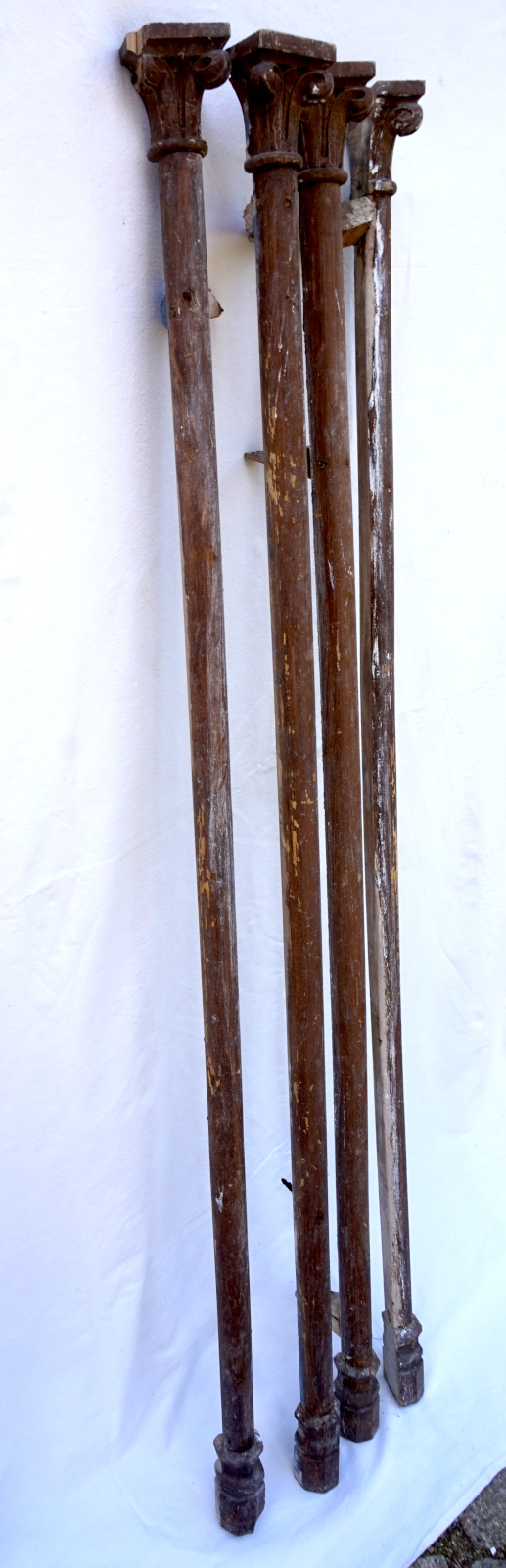 Ensemble de 4 colonnes en bois sculpté de style Gothique fin