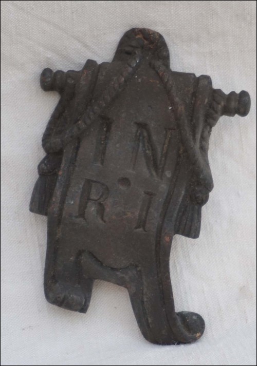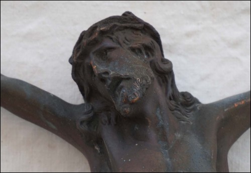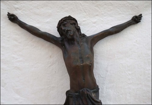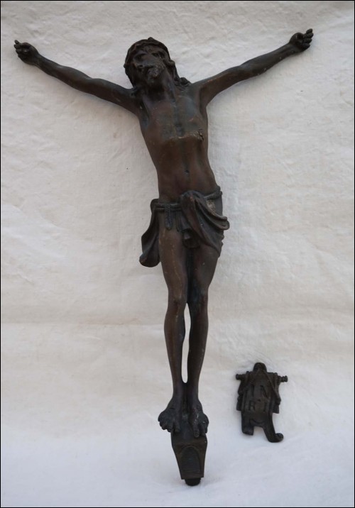Antique large french Christ corpus with INRI plate made by J Rabiant during the 1900's. 19 1/8" (48.5cm) height 12 3/4" (32.5cm) width. Good condition as presented on the following pictures.