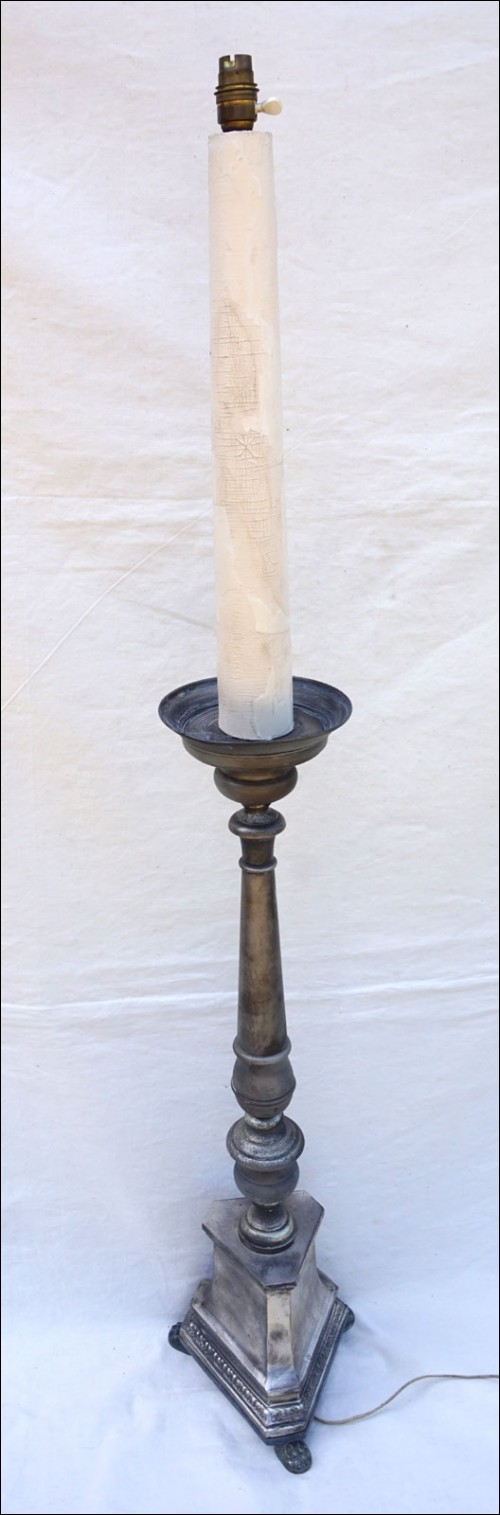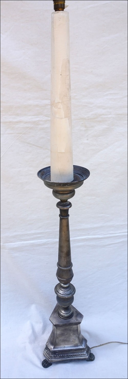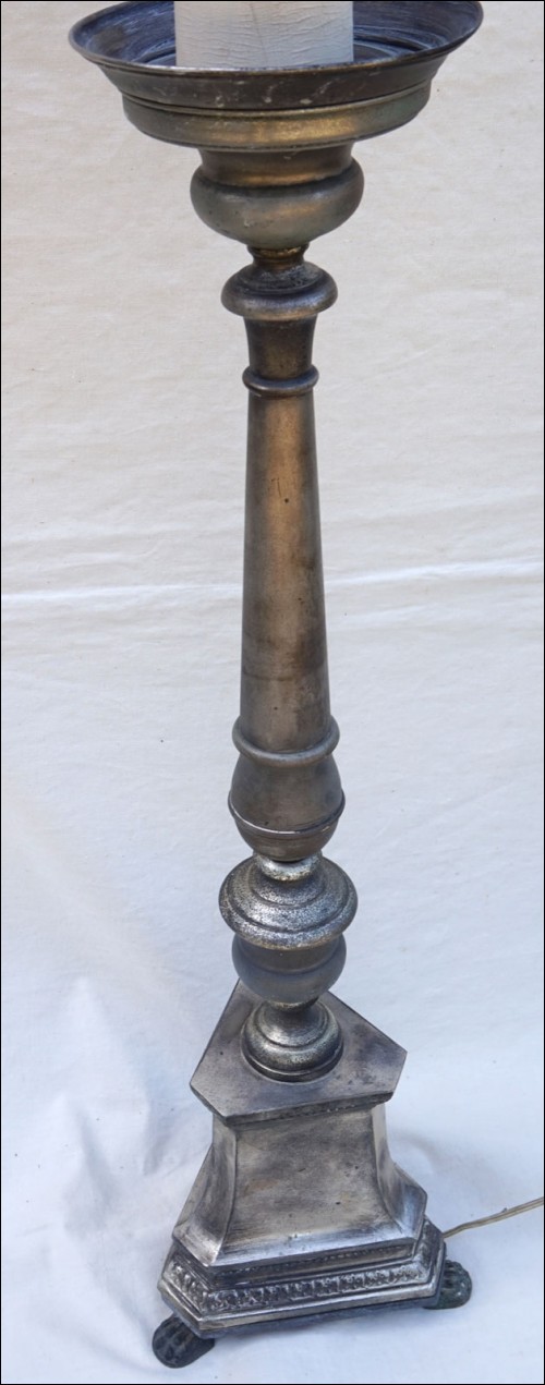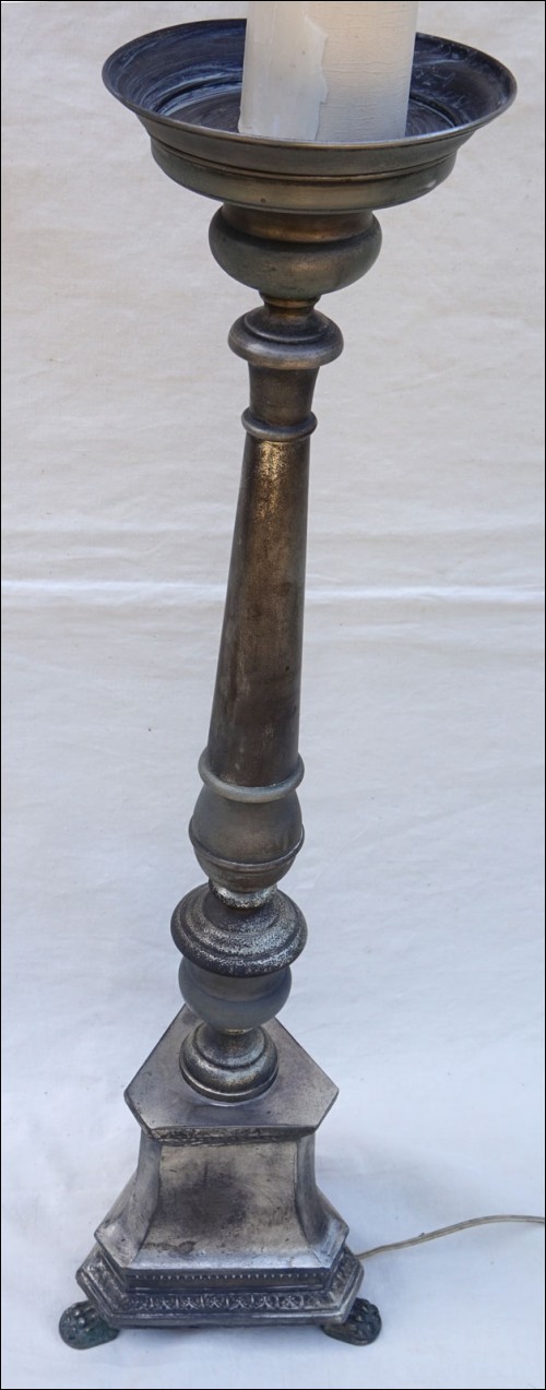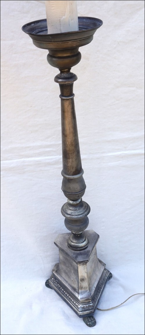 Large Altar Candlestick Lamp Brass Silver Plated 1910