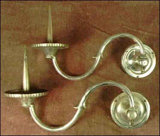 Pair of Altar Wall Candlestick Celebration Silvered Brass 1800