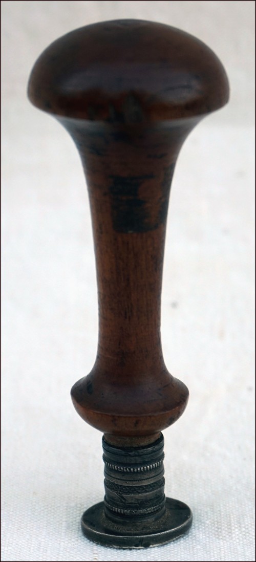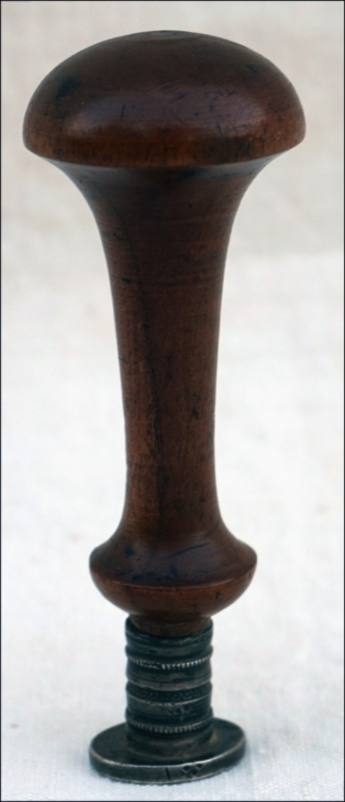 Sceau en argent et bois de tilleul fin XVII, début XVIIIe siècle. Cachet d'Eglise, de théologien ou poète réformateur. La devise est en latin médiéval, "labore florebit otio til erit" Que la méditation fleurisse le tilleul (tilae)? Au centre un tilleul emblématique, arbre sacré des civilisations germaniques, lumière de la vie dans le style de Dürer, symbole de la fidélité. Il est en bel état malgré l'usage, rares petis accidents, titre 800 pas de poinçon. Hauteur 8 cm.