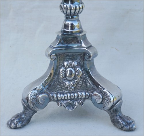 Silvered Brass Candlestick Lion Claws Feet Louis XV 18th C