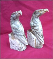 Eagles Bookends Carved Carrera Marble Italian Art Deco Glass Eyes 1940