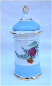 LIMOGES Porcelain Apothecary Jar Transferware Flower Gild D&C