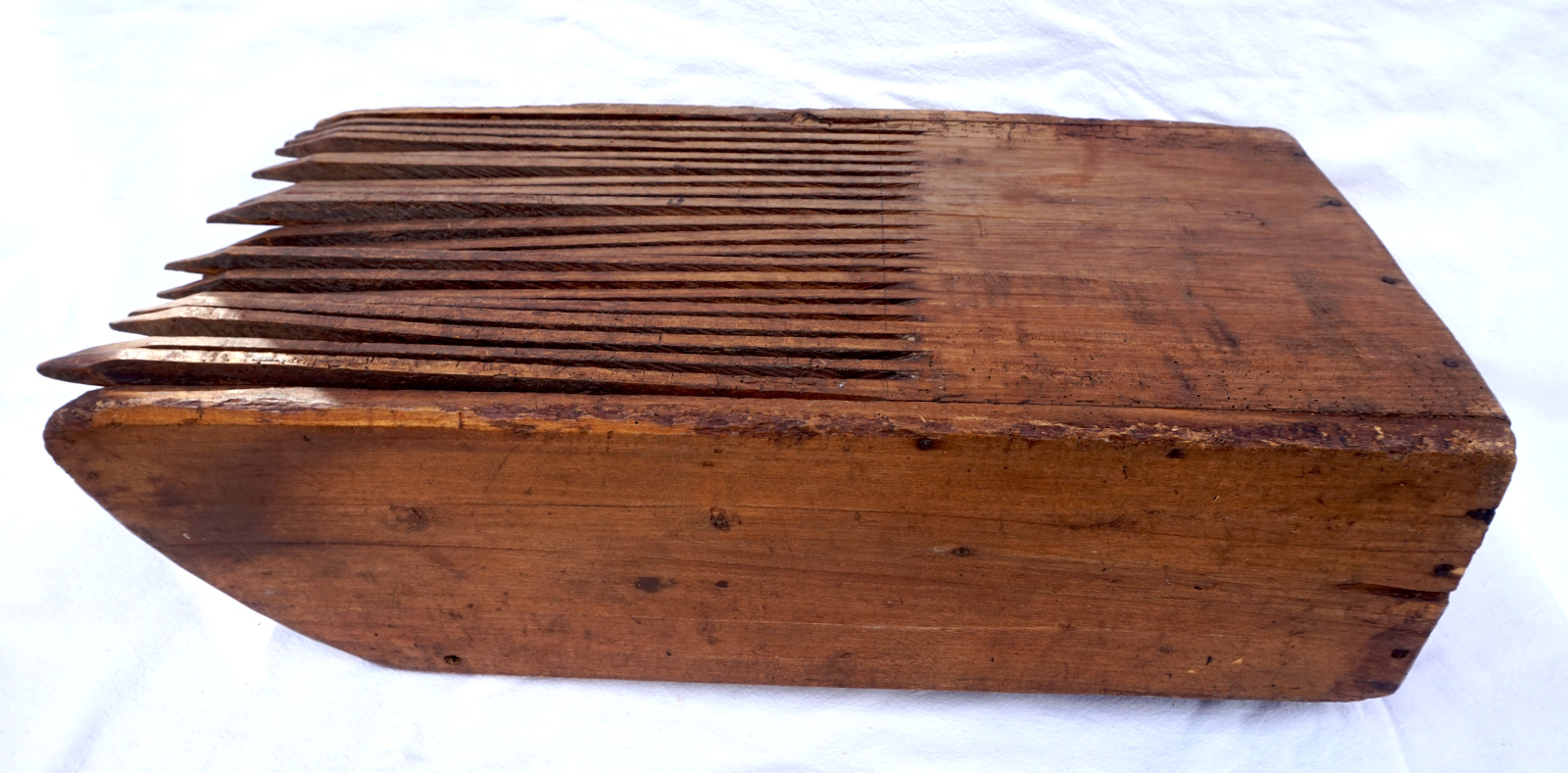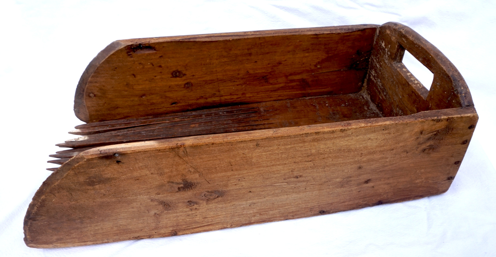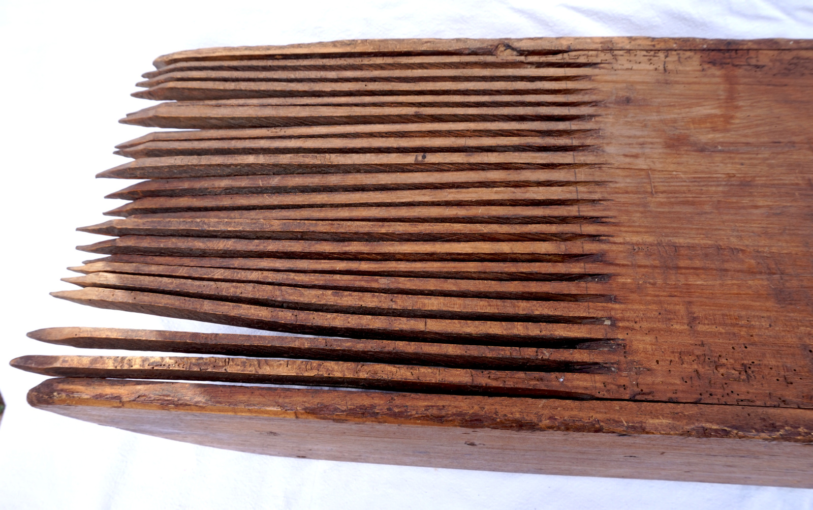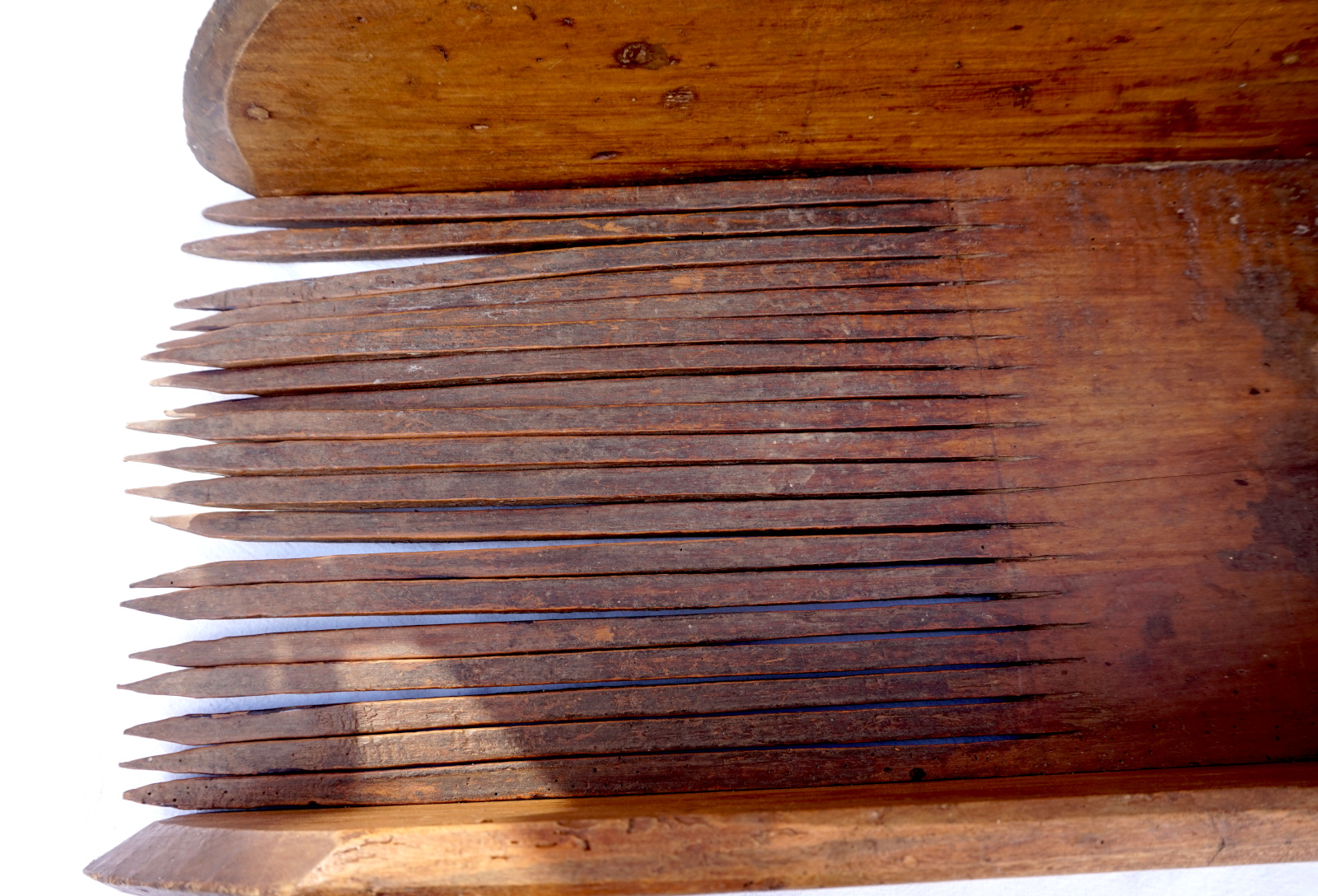 Grand peigne à myrtille en bois, pour les récoltes pharmaceutiques de Champagne, fin XIX° siècle. Longueur 58.5 cm, largeur 30.5 cm, hauteur 18 cm, poids 2.6 kg. Bel état, la poignée avant est manquante.