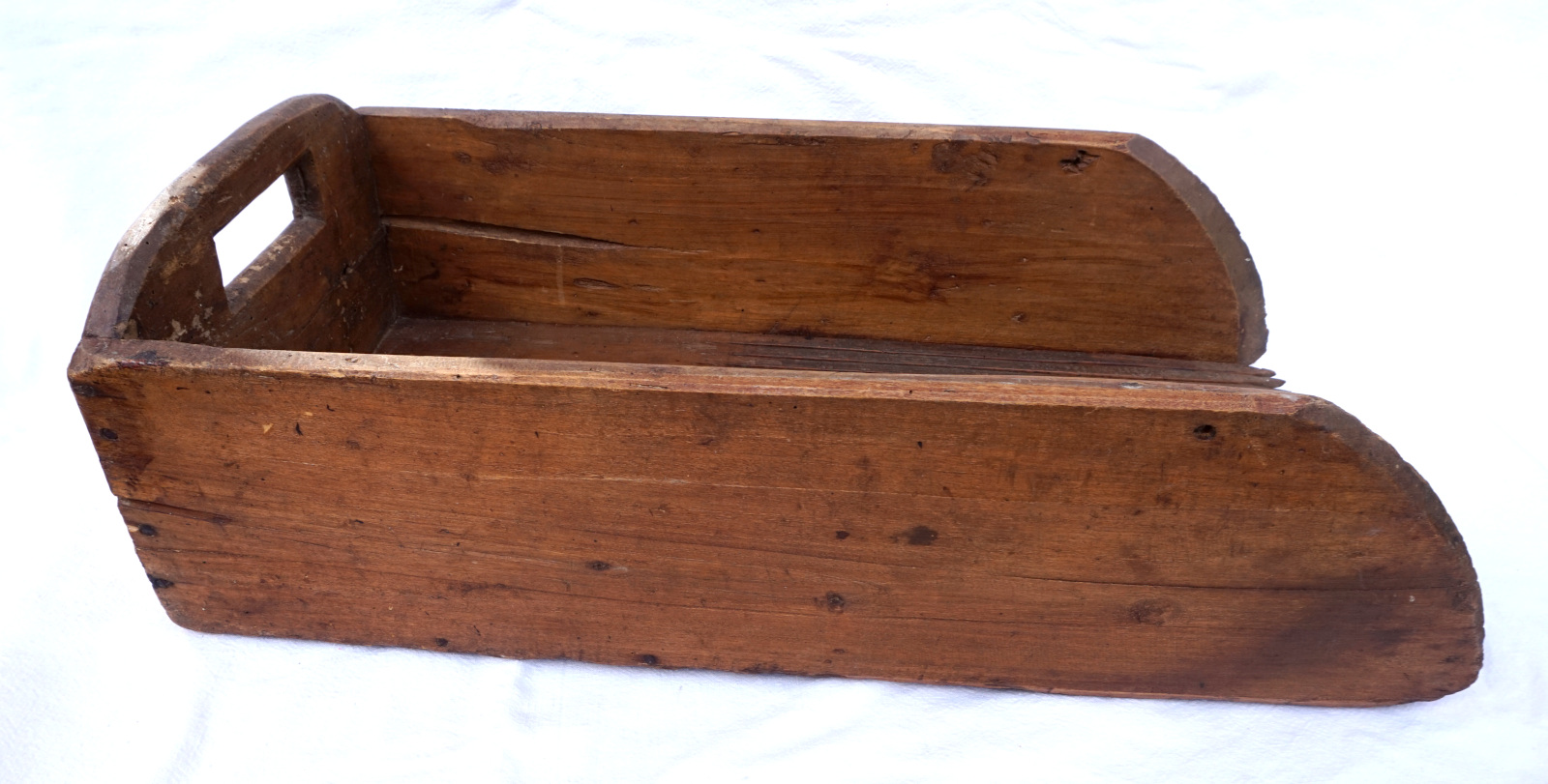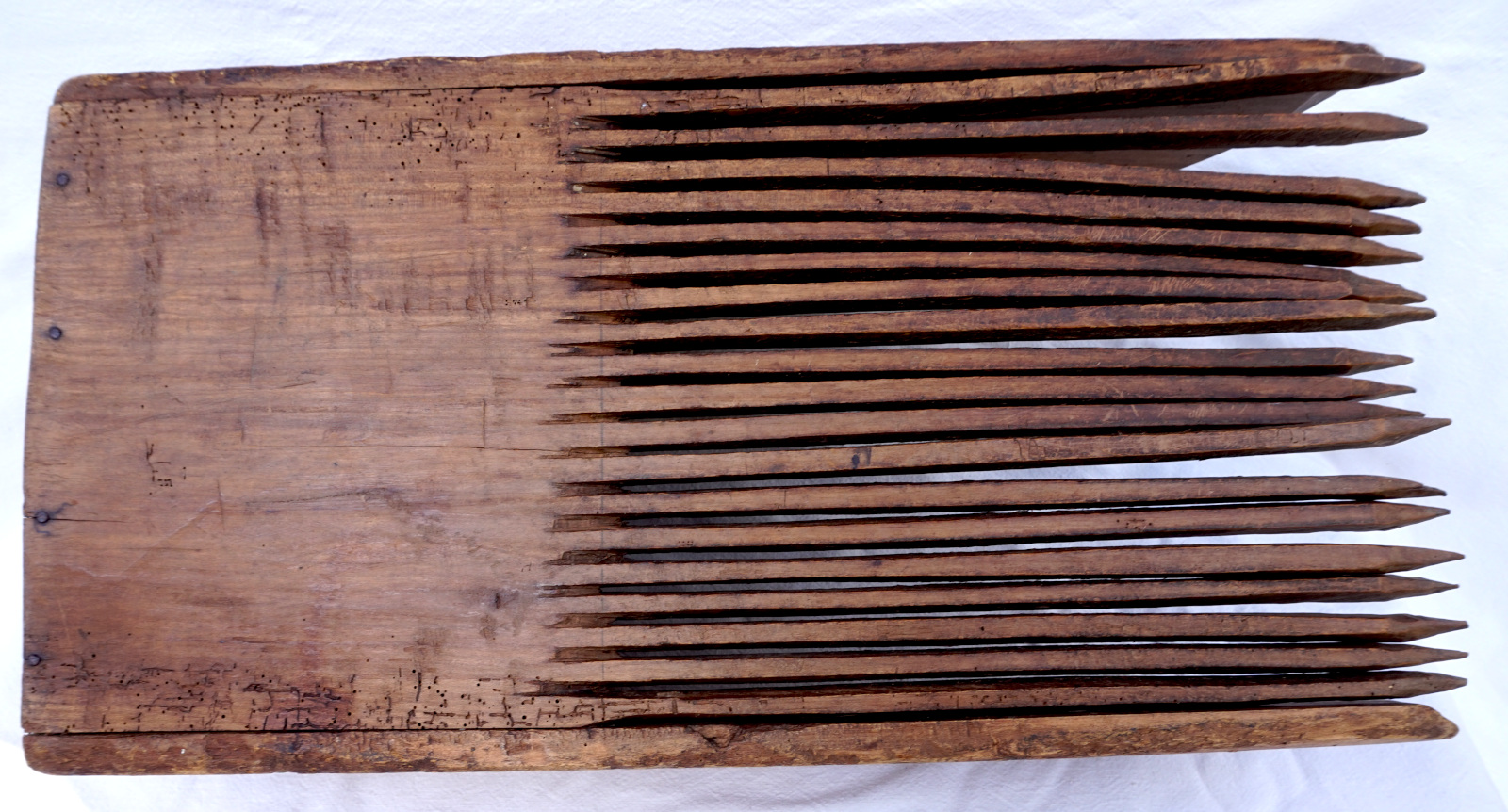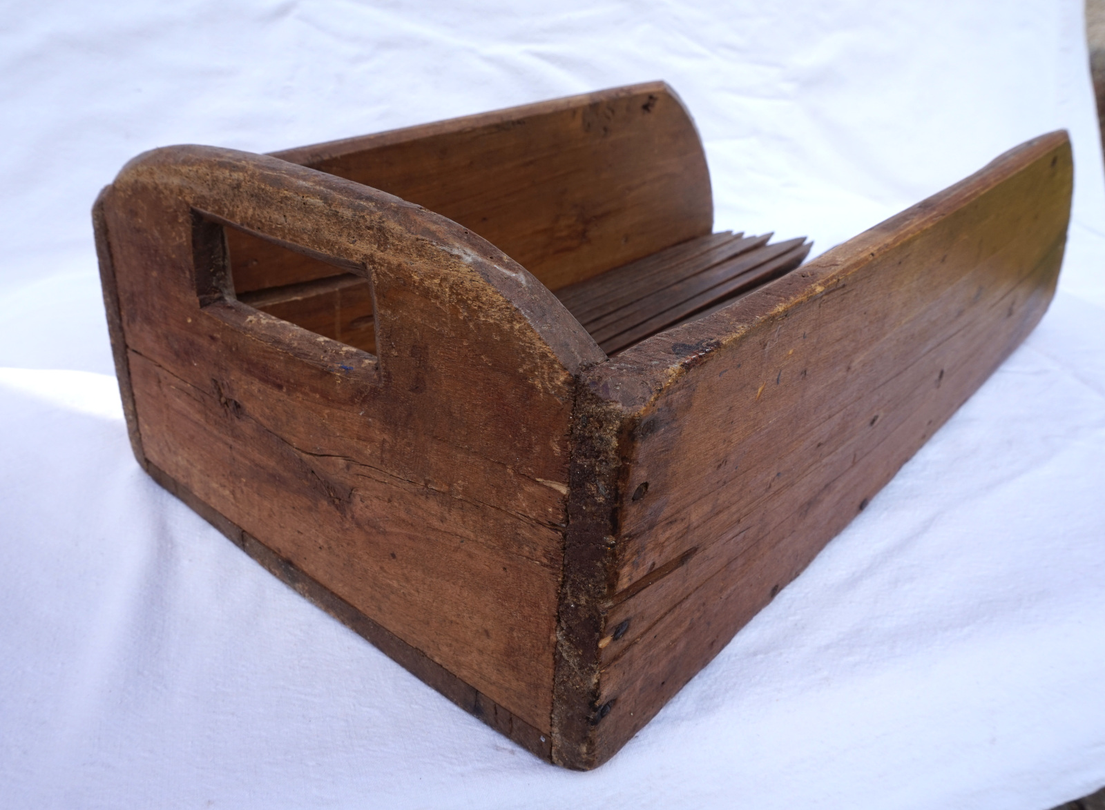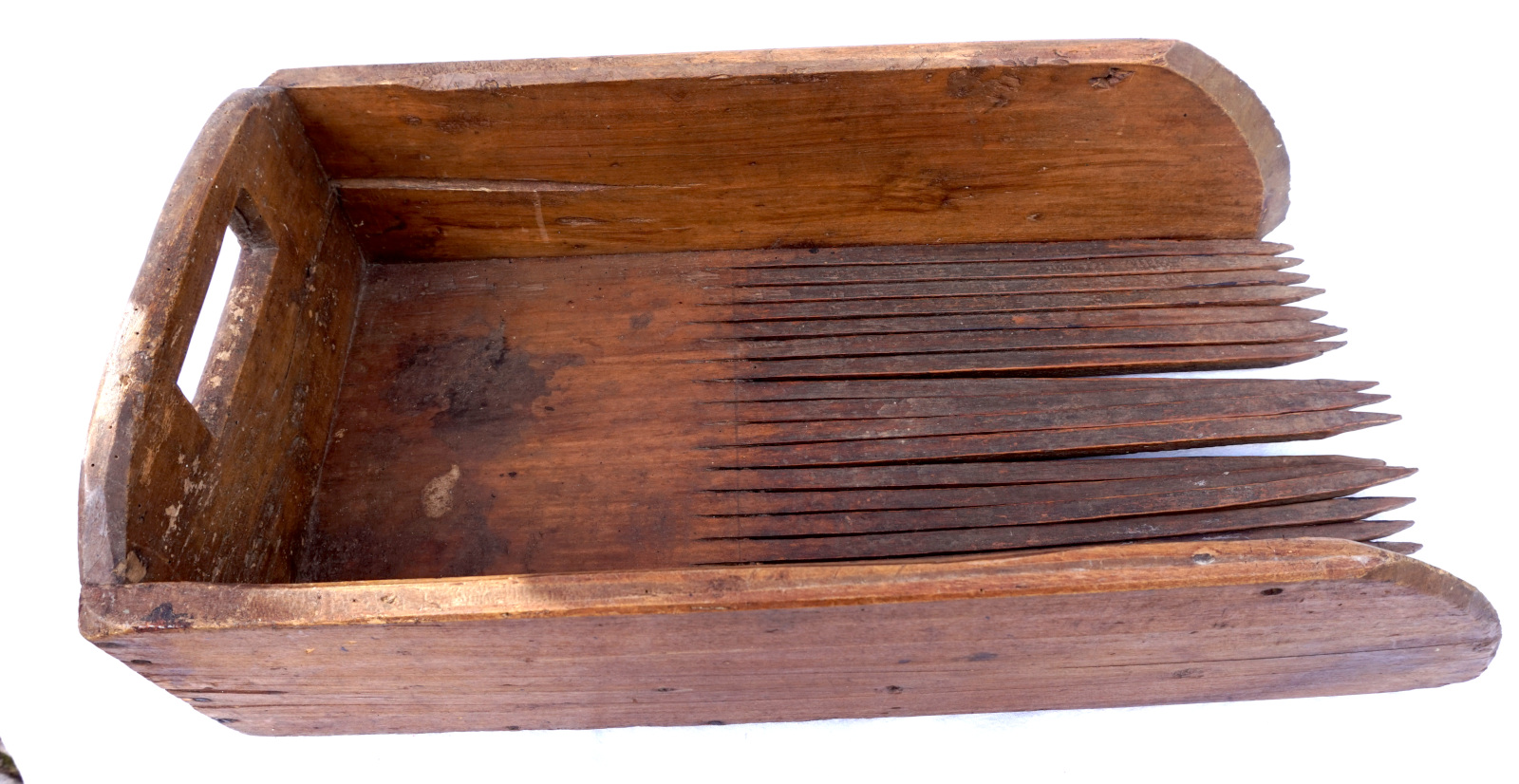 Grand peigne à myrtille en bois, pour les récoltes pharmaceutiques de Champagne, fin XIX° siècle. Longueur 58.5 cm, largeur 30.5 cm, hauteur 18 cm, poids 2.6 kg. Bel état, la poignée avant est manquante.
