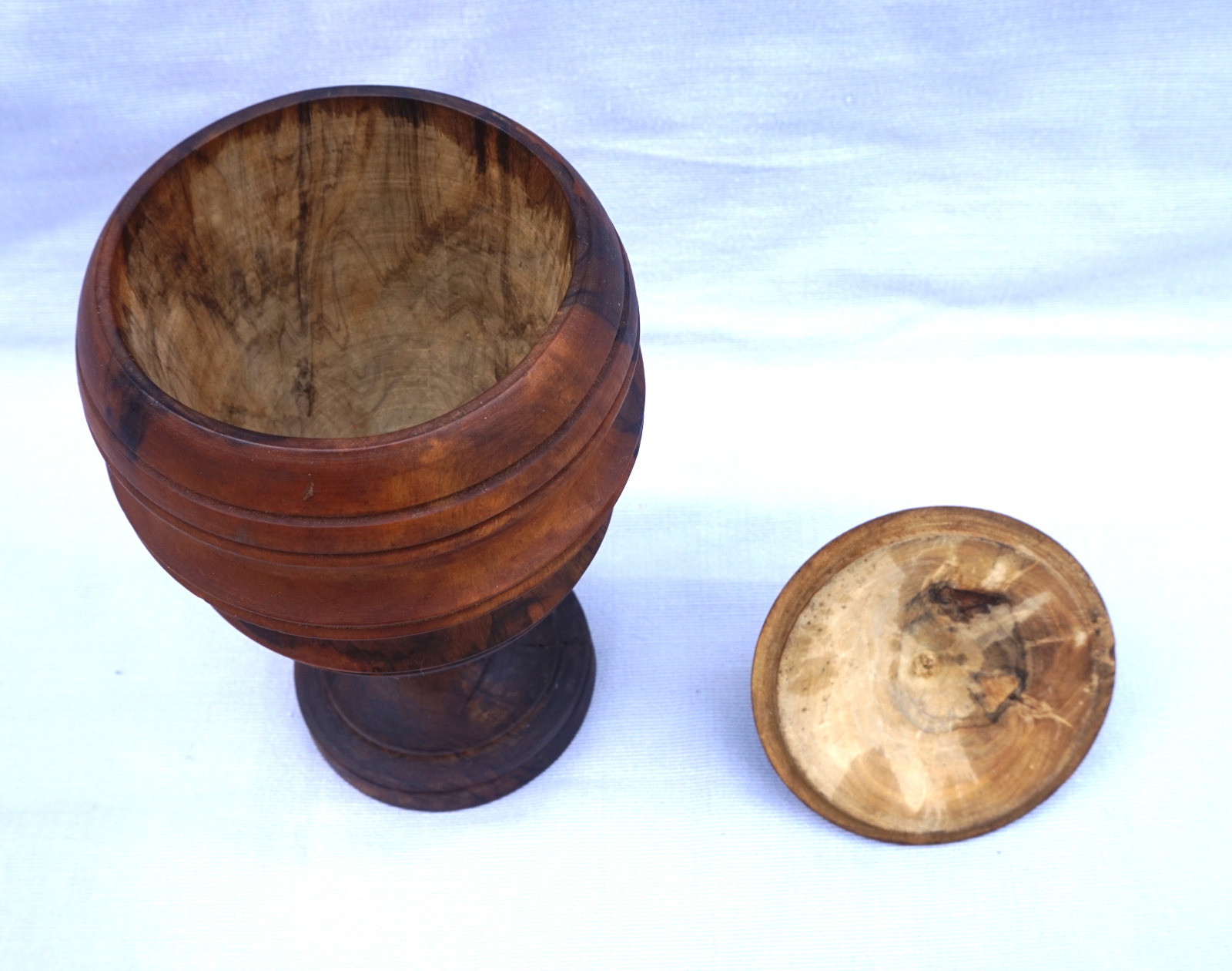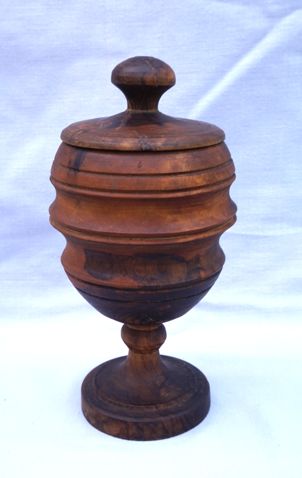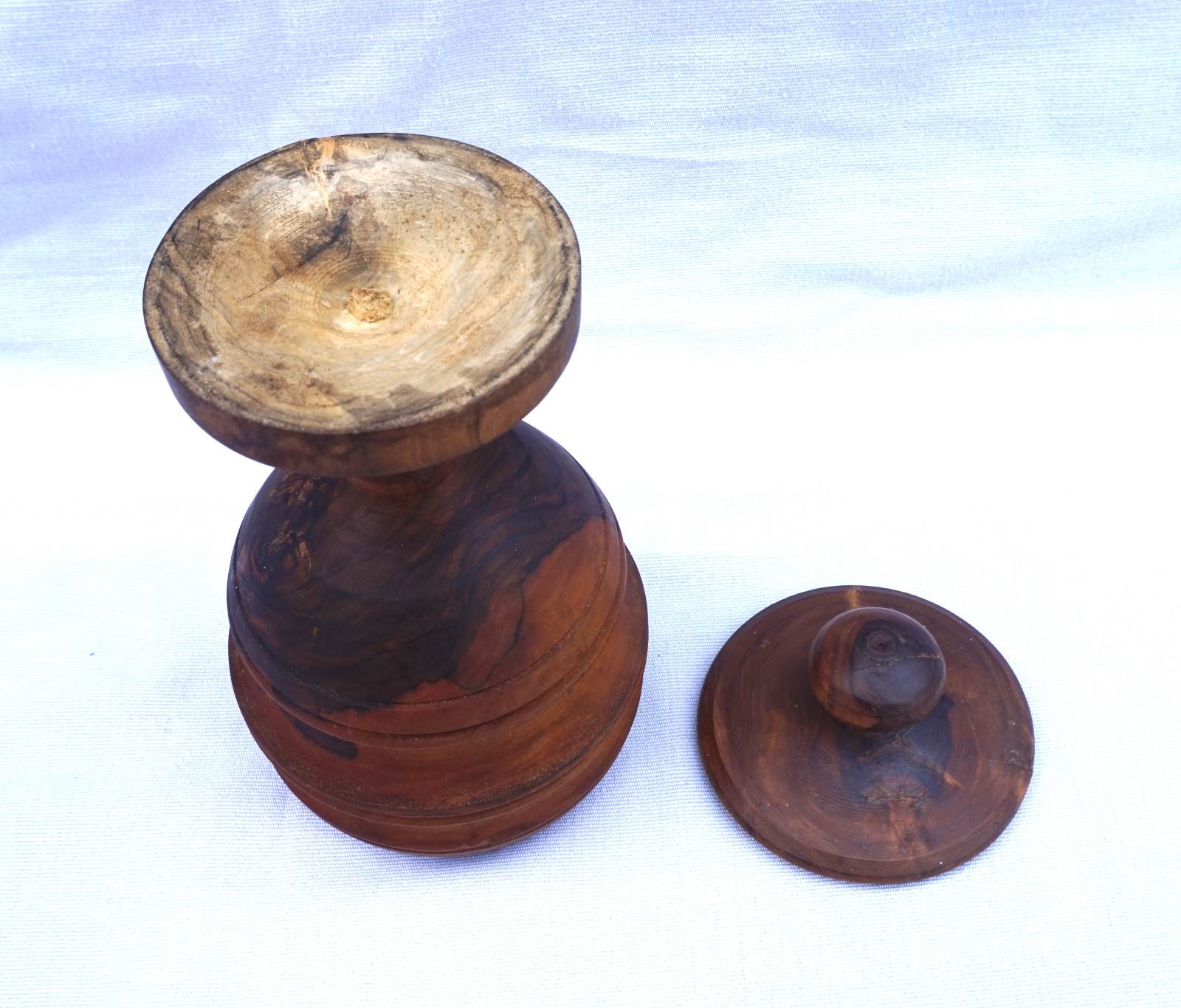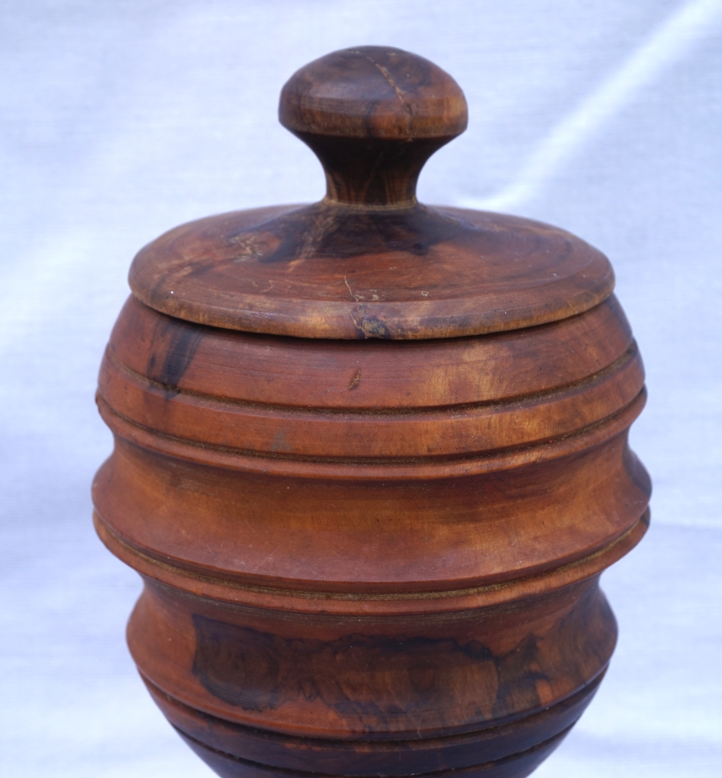 Footed Herbal Lidded Jar Urn Turned Wood Eraly 20th C