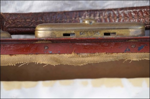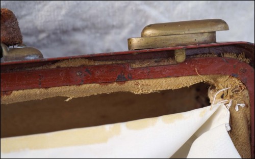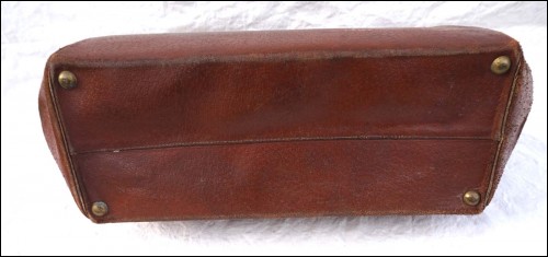 Vintage french leather doctor bag with brass hardware and feet.18 1/2" (47cm) width 6 1/8" (15.5cm) depth 8 1/4" (21cm) height. Good condition, the lining needs to be repair as presented on the following pictures.