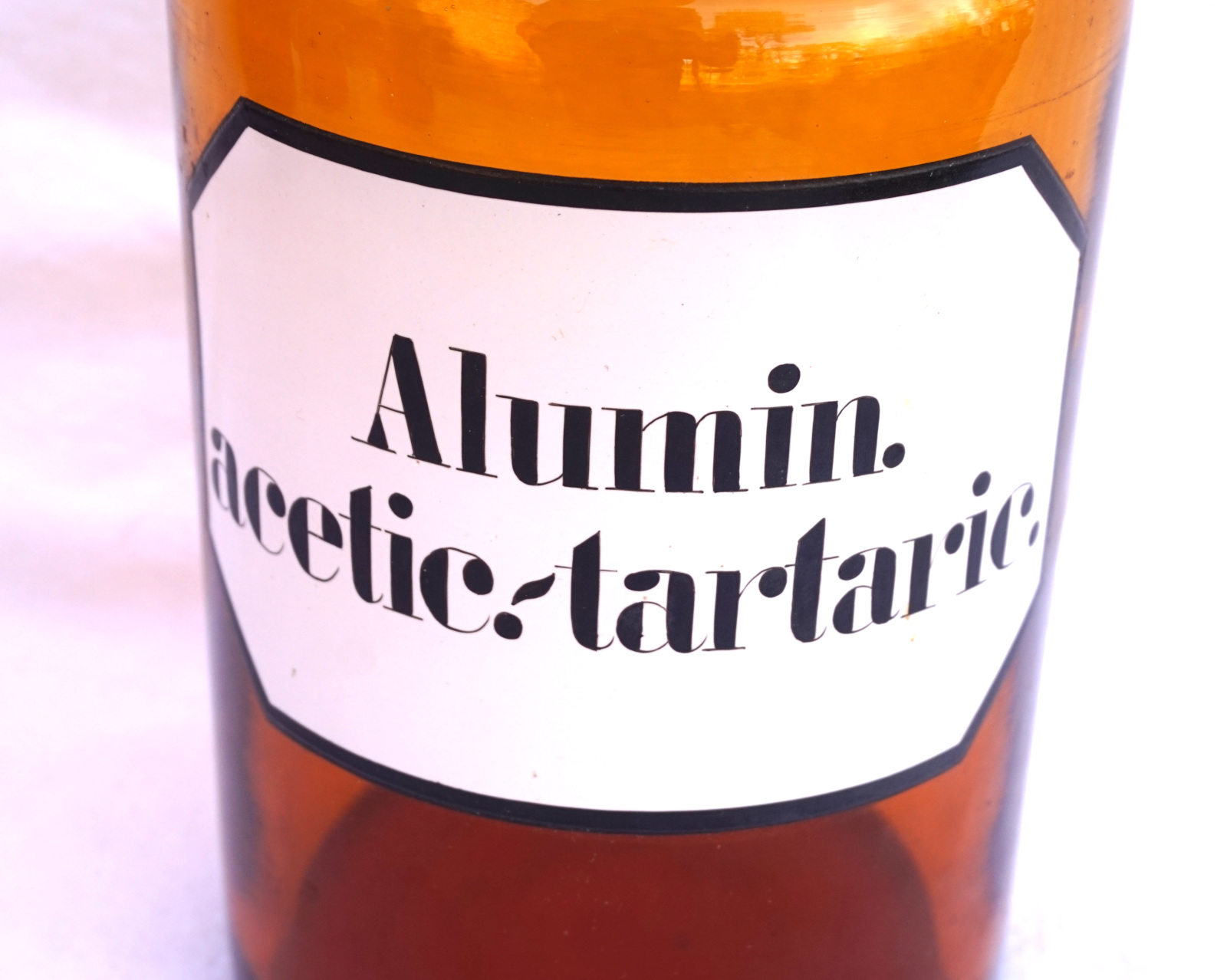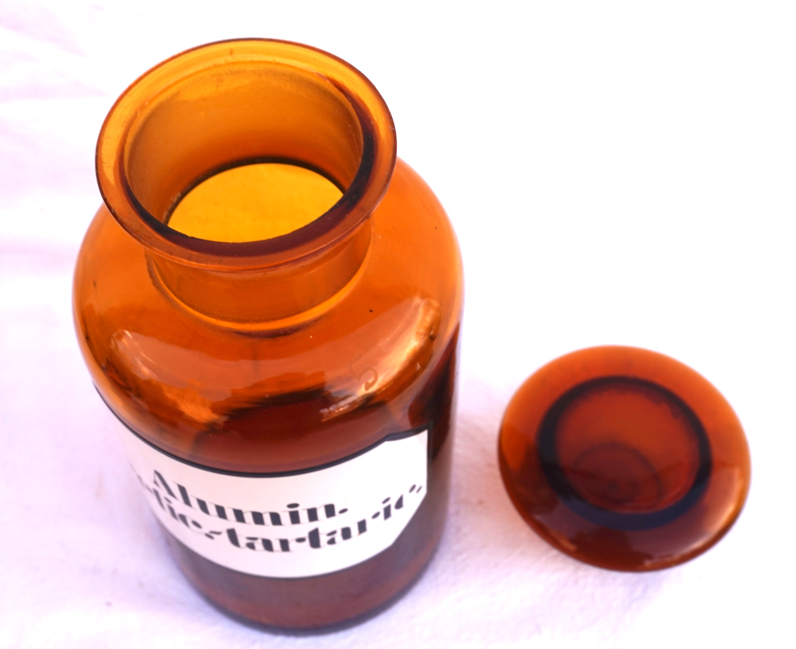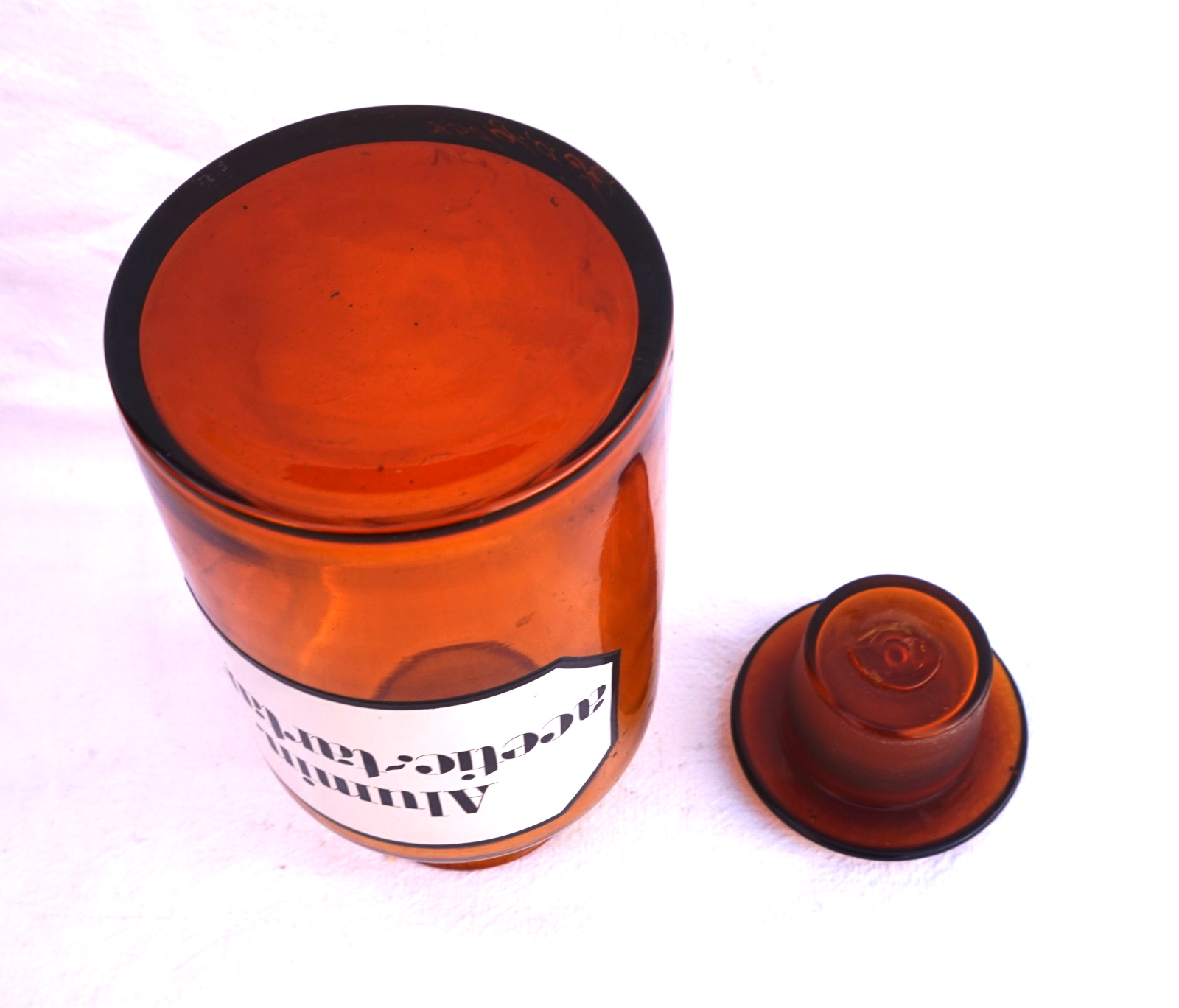 German Amber Glass Apothecary Jar Aluminium acetotartrate Label Late 19th C