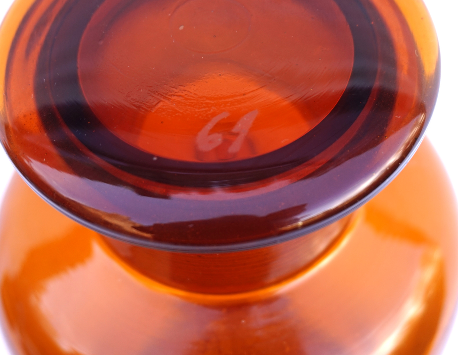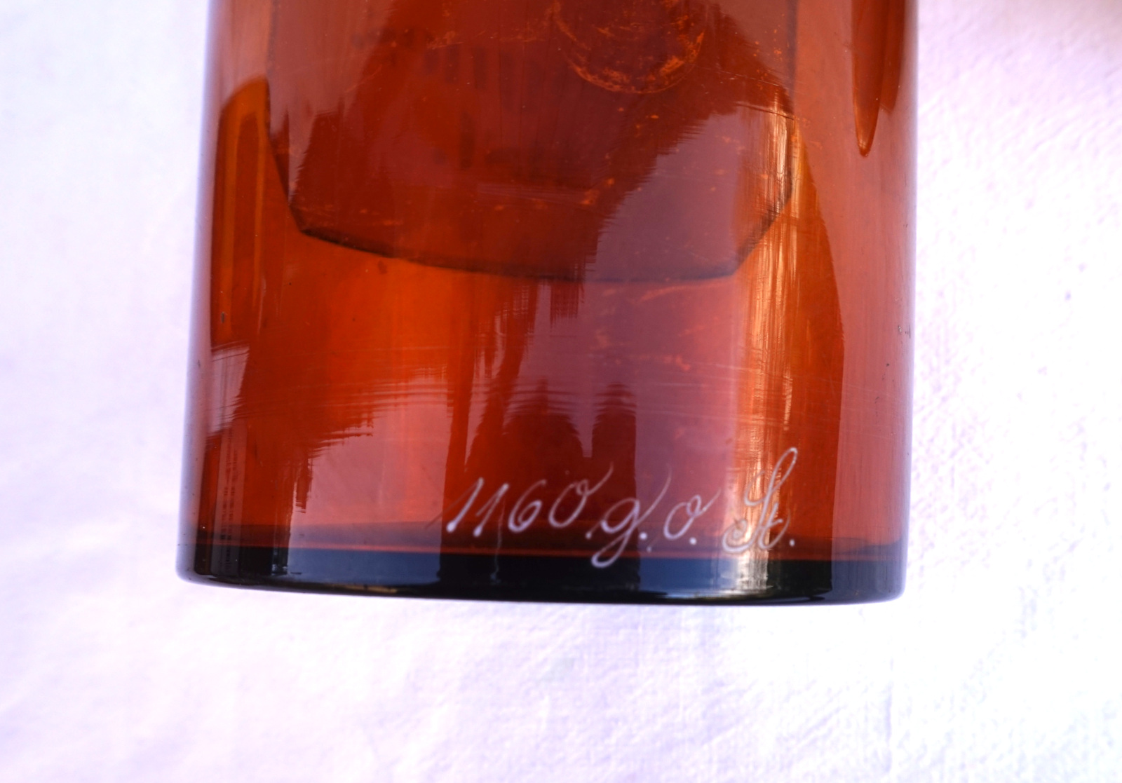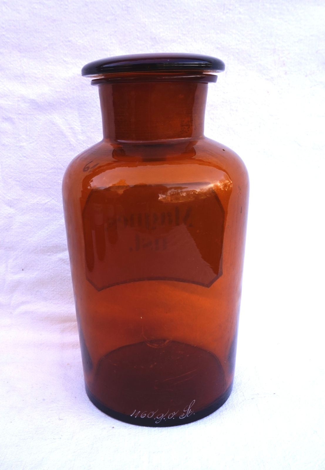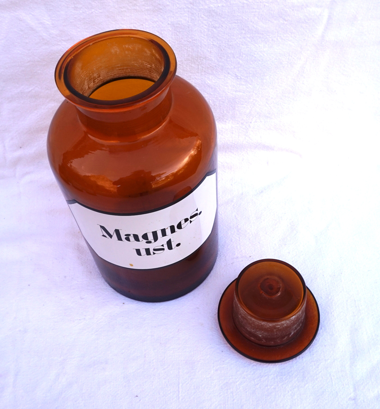 Large Amber Glass Apothecary Jar Magnes. ust. Label Late 19th C