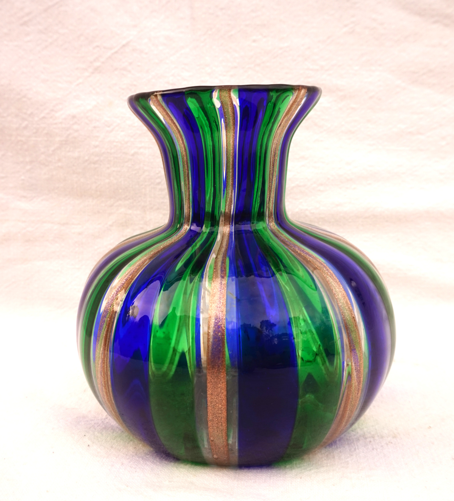 Vintage Venini Art Glass Gio Ponti Ball Vase Blue Green Gold 1950's