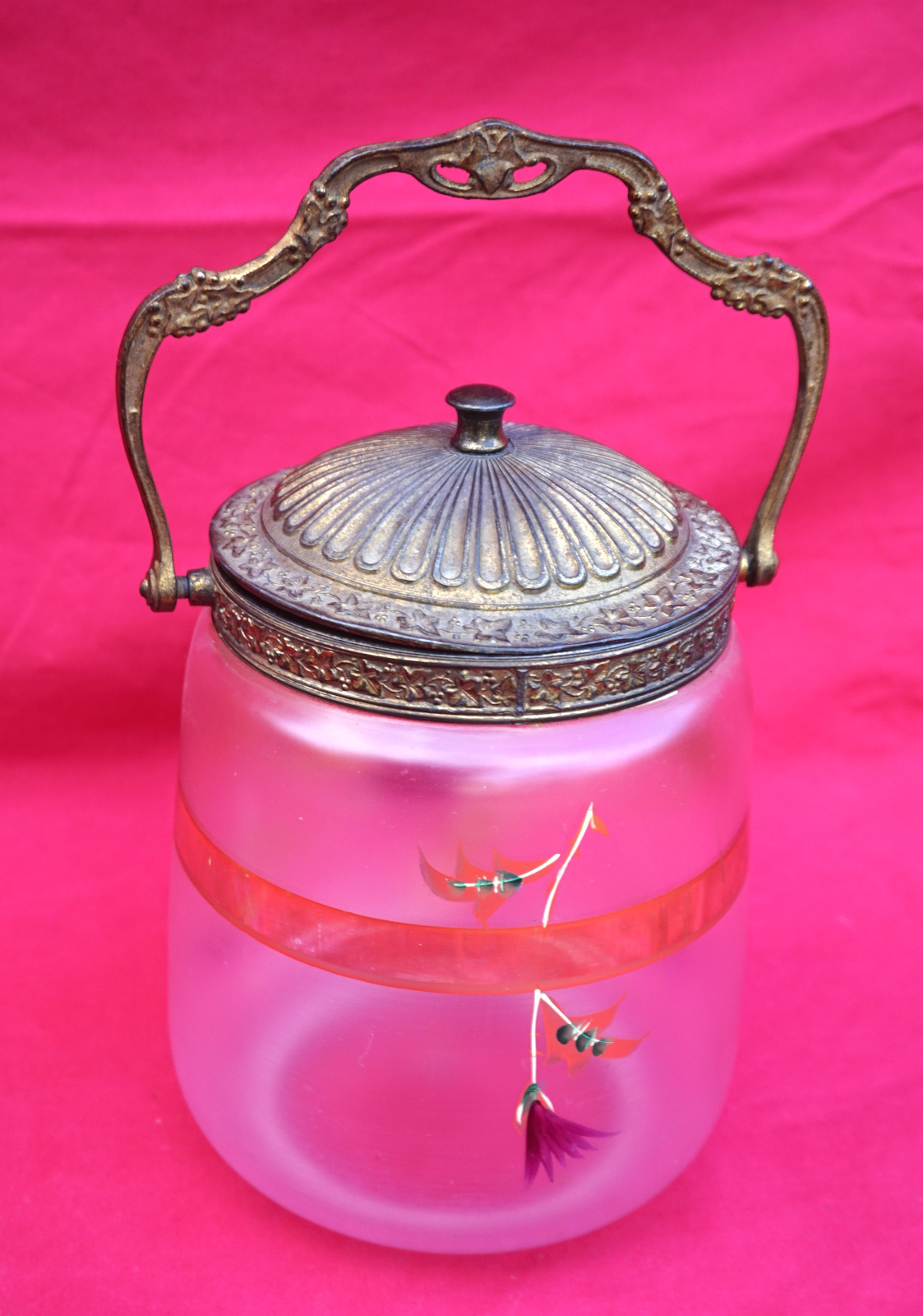 LEGRAS Montjoie French Enamel Glass Biscuit Barrel Jar Cookie Gilt Brass 1900's
