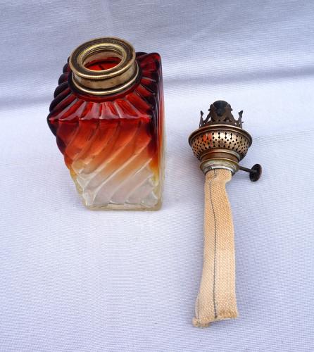 BACCARAT Twisted Amber Bamboo Glass Oil Lamp French Art Glass 1880