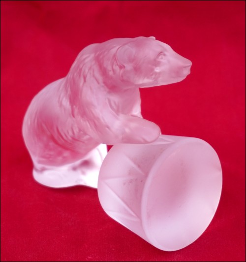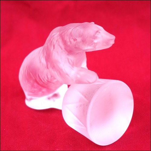 French frosted crystal bear with stand made by Cristallerie Royale de Champagne during the mid-century. 3 3/4" (9.5cm) width, 2 3/4" (7cm) height. Perfect condition as shown by the following pictures.