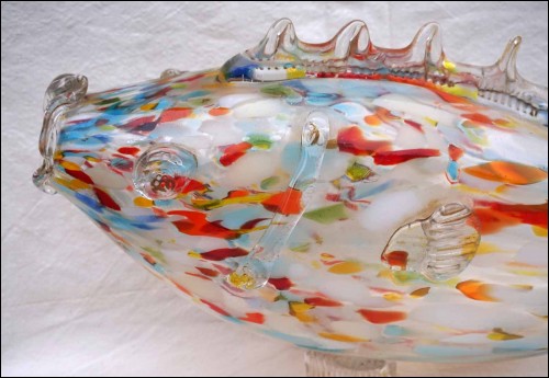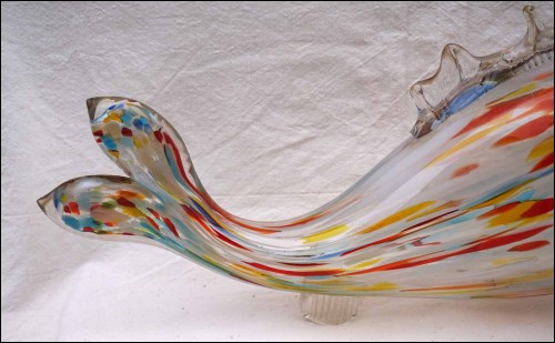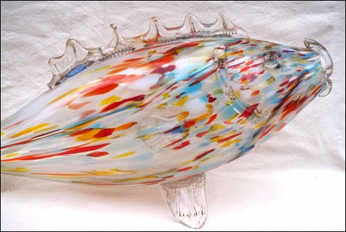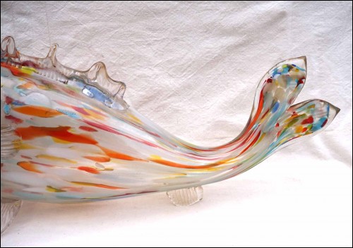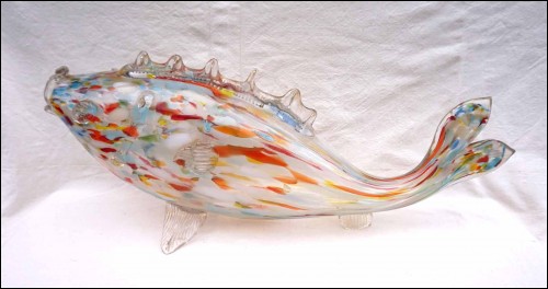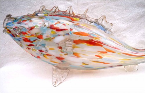 Large fish multicolor blowing glass in Murano style made in Bohemia dring the 1980's. 27" (68.5cm) length, 11 1/2" (29.2cm) height. Perfect condition as shown by the following pictures.