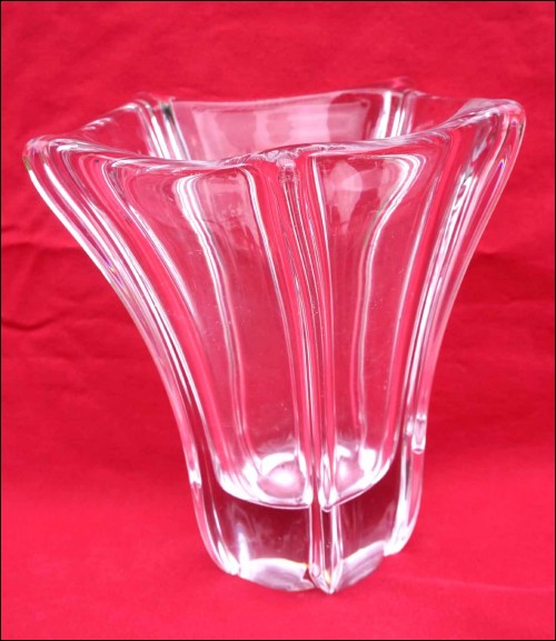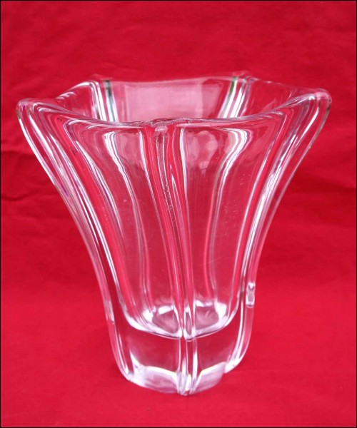 Vintage clear blown crystal vase made by Daum France during the 1960's. It's signed Daum France with the Lorraine cross on the base. 6 1/4" (15.8cm) height, 5 3/8" (13.5cm) diameter, weight 2lb 8.14oz (1.138 kilogram). Good condition a few small scratches and wear as shown by the following pictures.