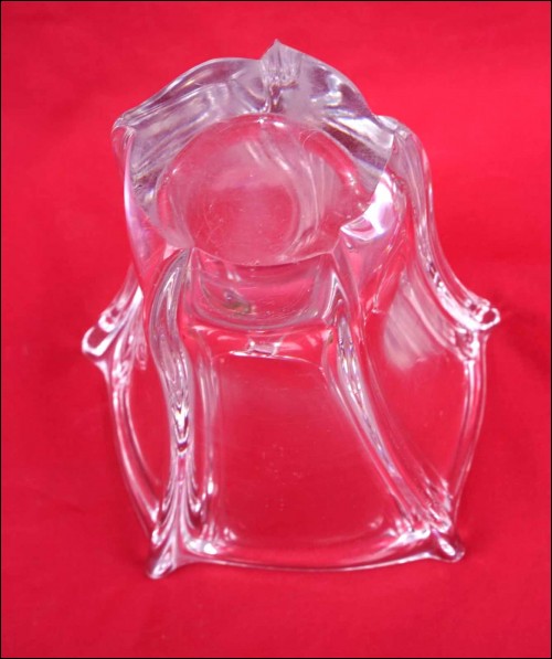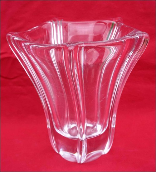 Vase en cristal soufflé par Daum France vers 1960. Signature gravée à la croix de Lorraine. Hauteur 15.8 cm, diamètre 13.5 cm, poids 1.138 kg.
