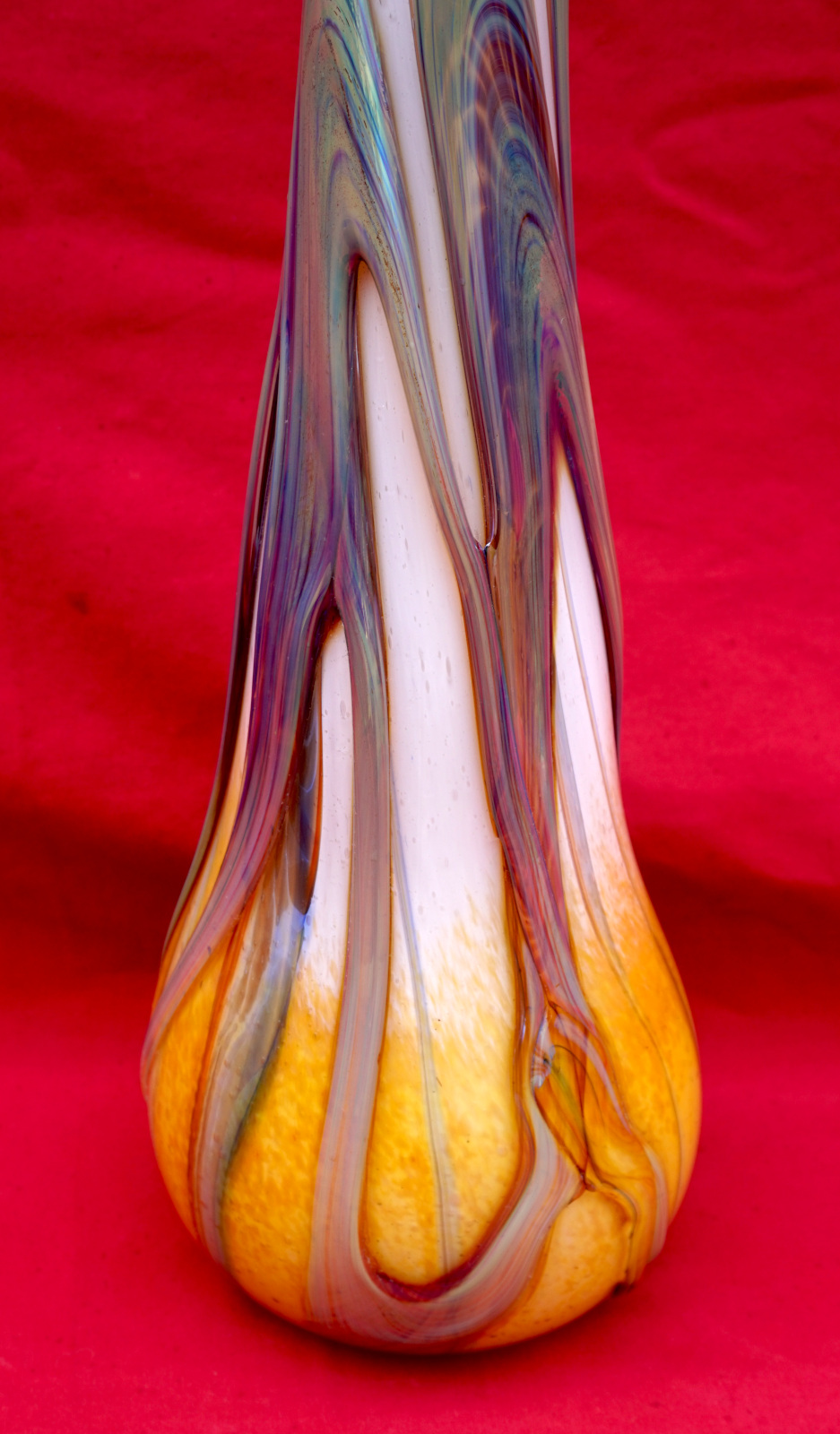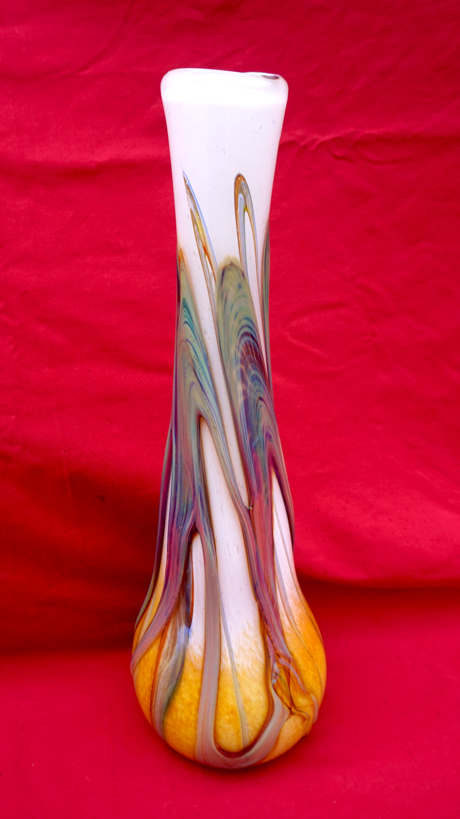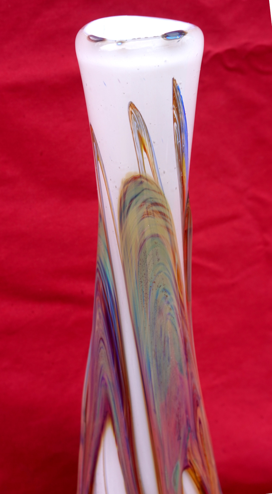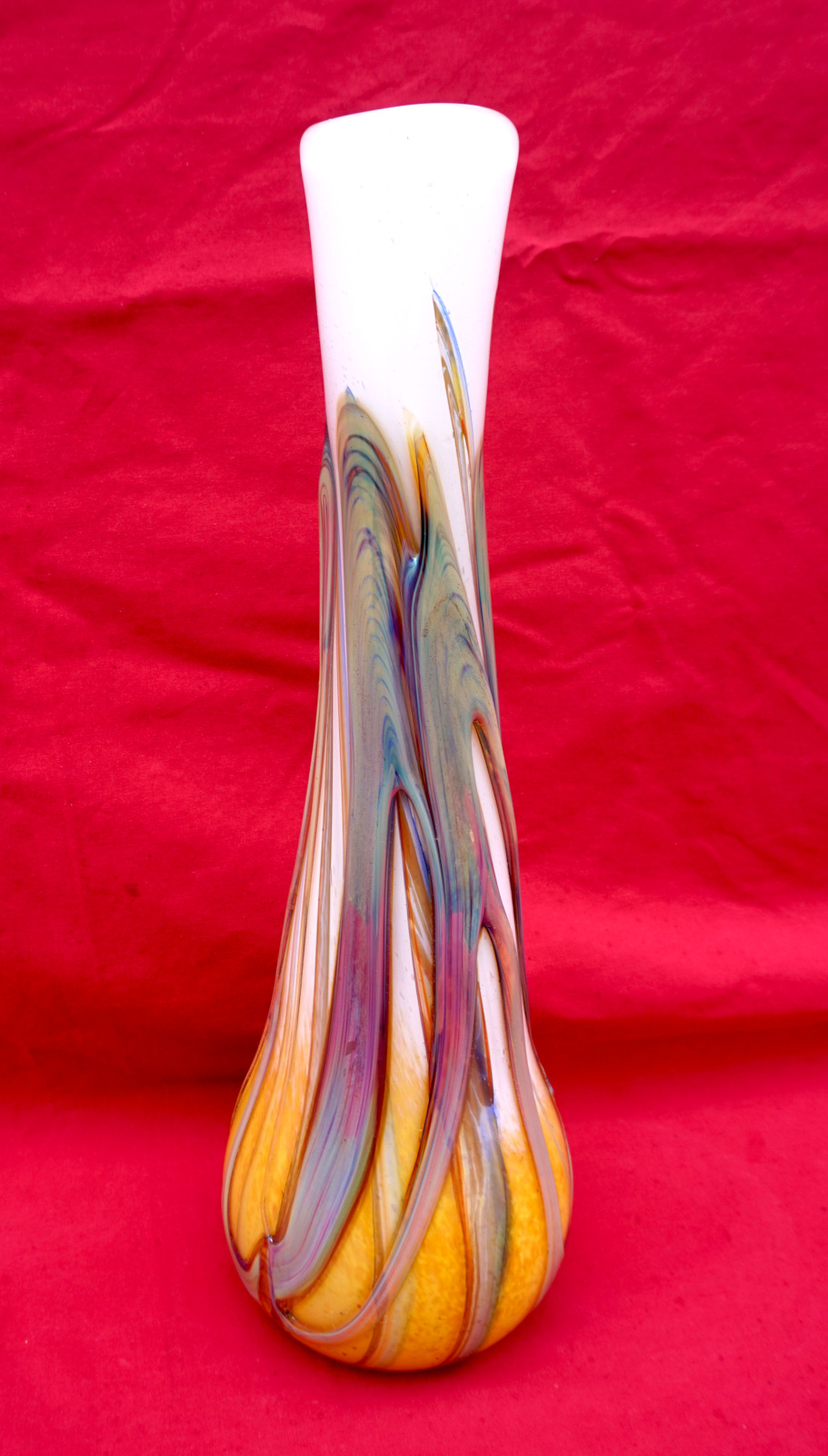 For our French-speaking friends Grand vase en verre soufflé à inclusions par Dider Saba maître verrier Antibes (Biot), signé sur son fond. Hauteur 37.5 cm, diamètre à la base 10.8 cm, poids 1.146 kg. Parfait état.