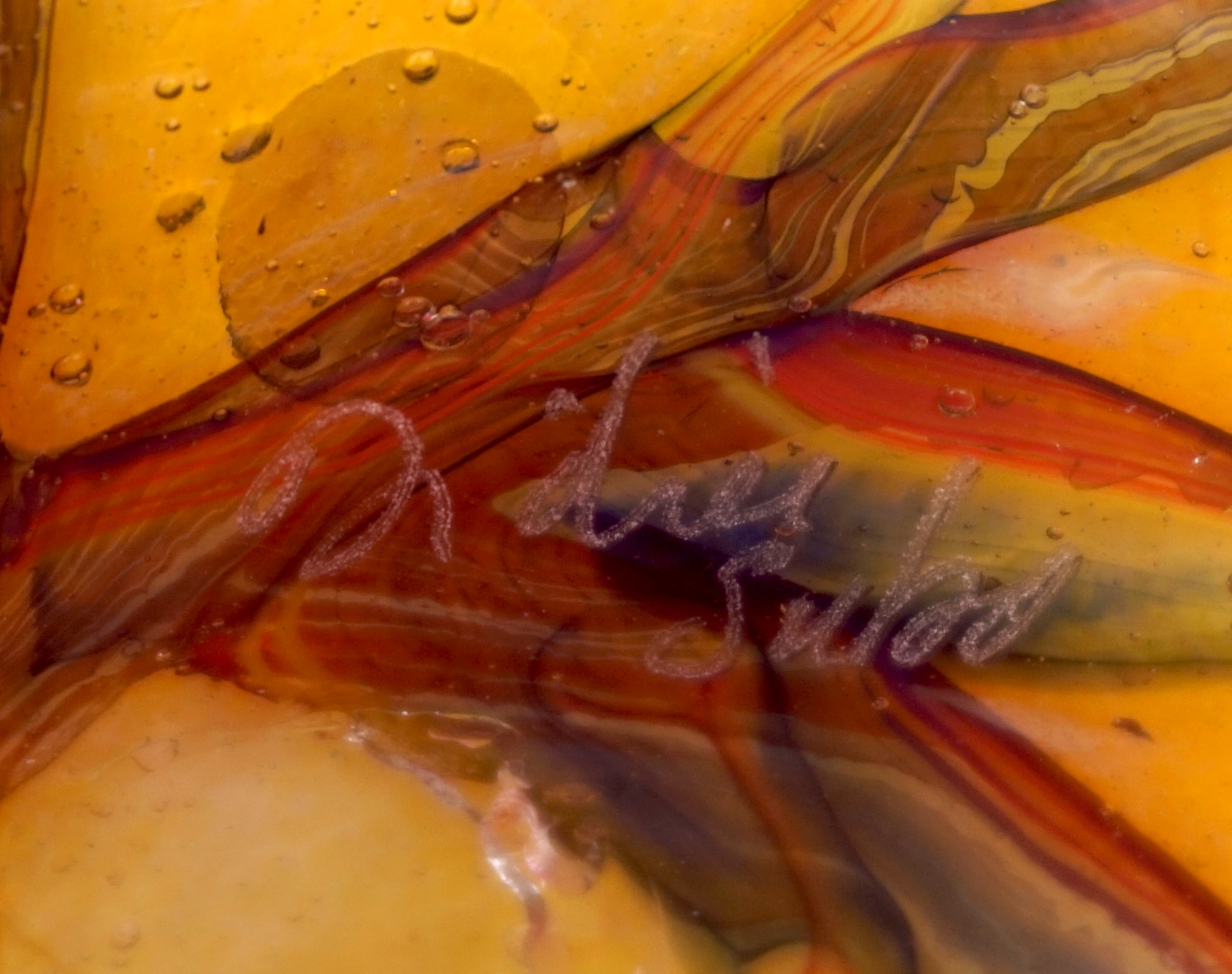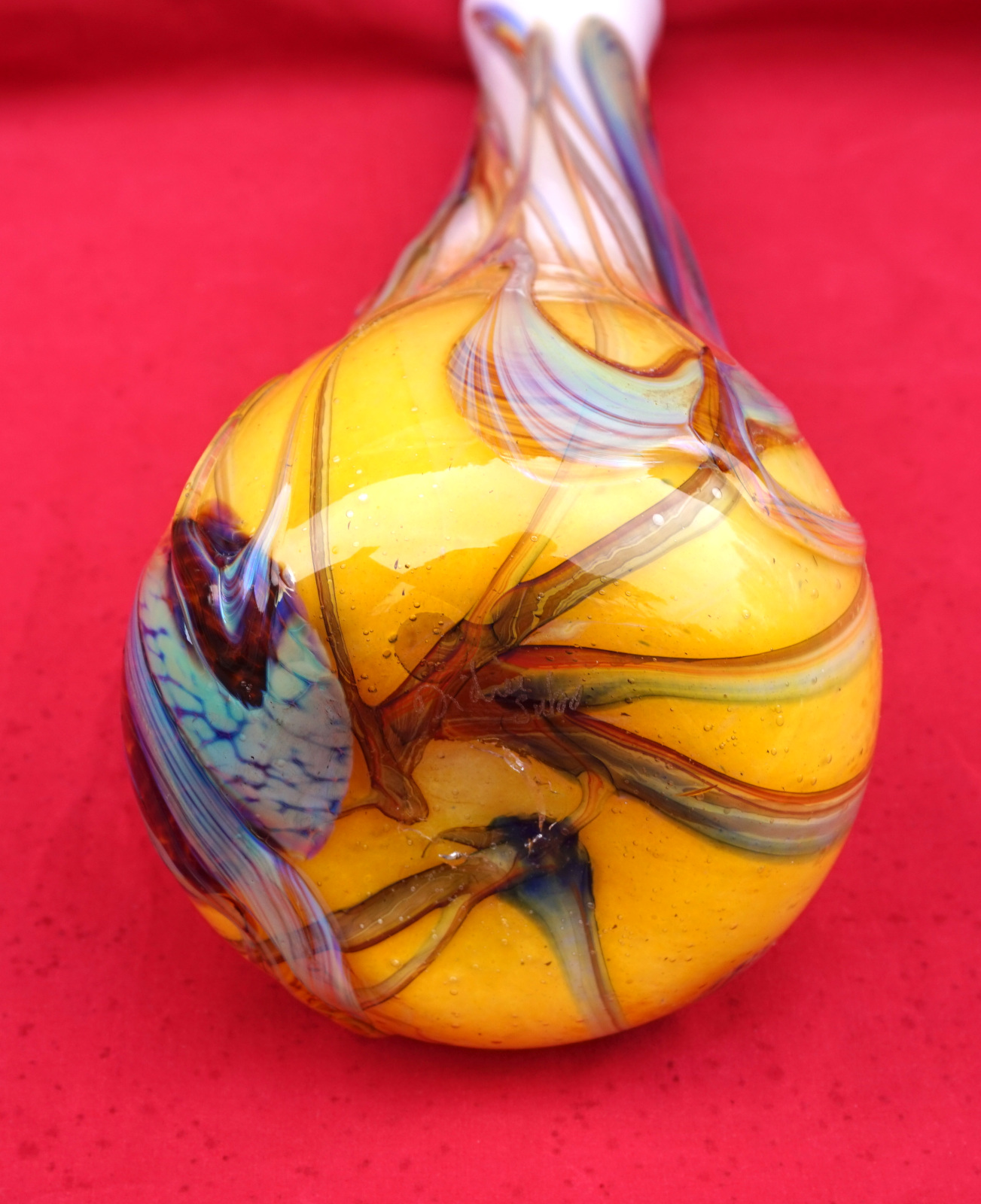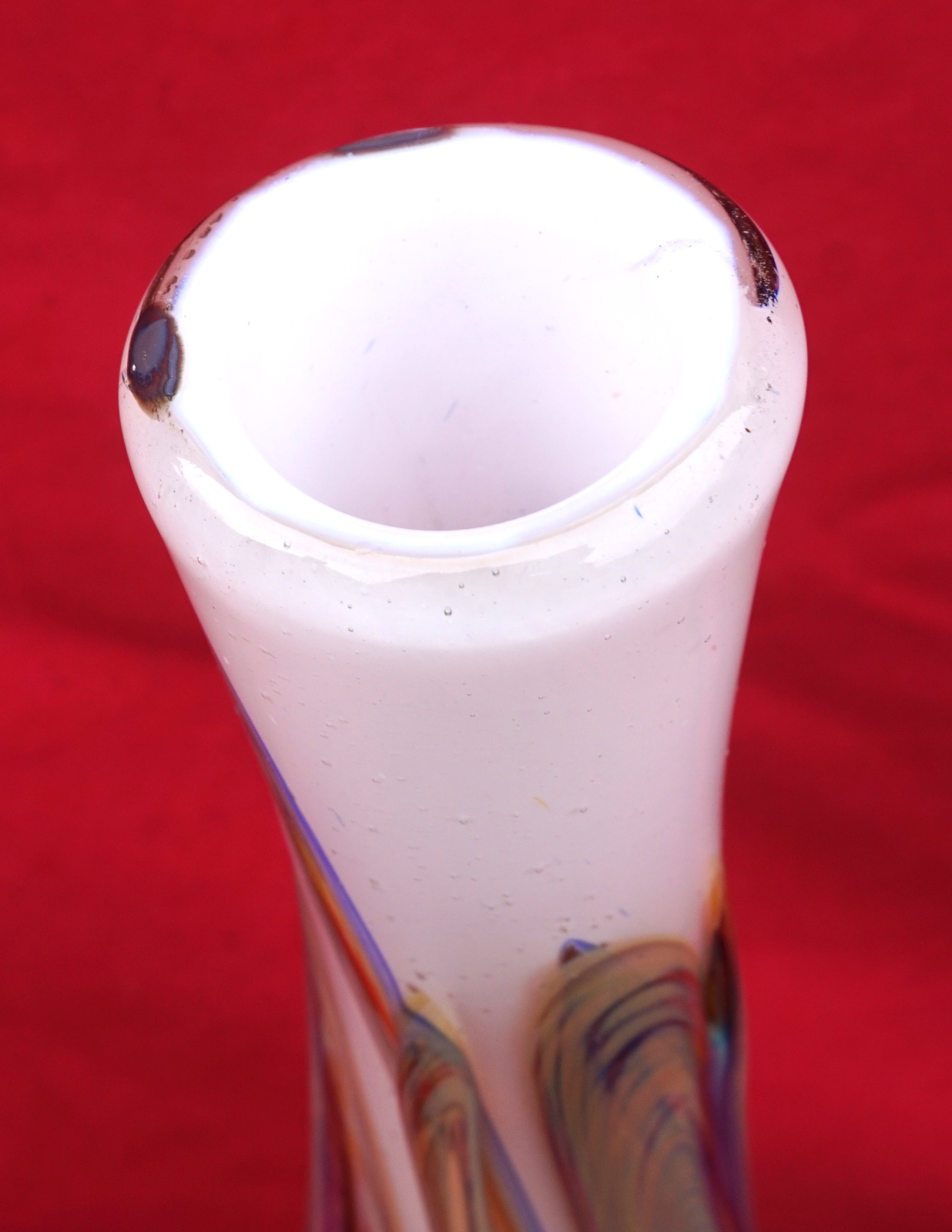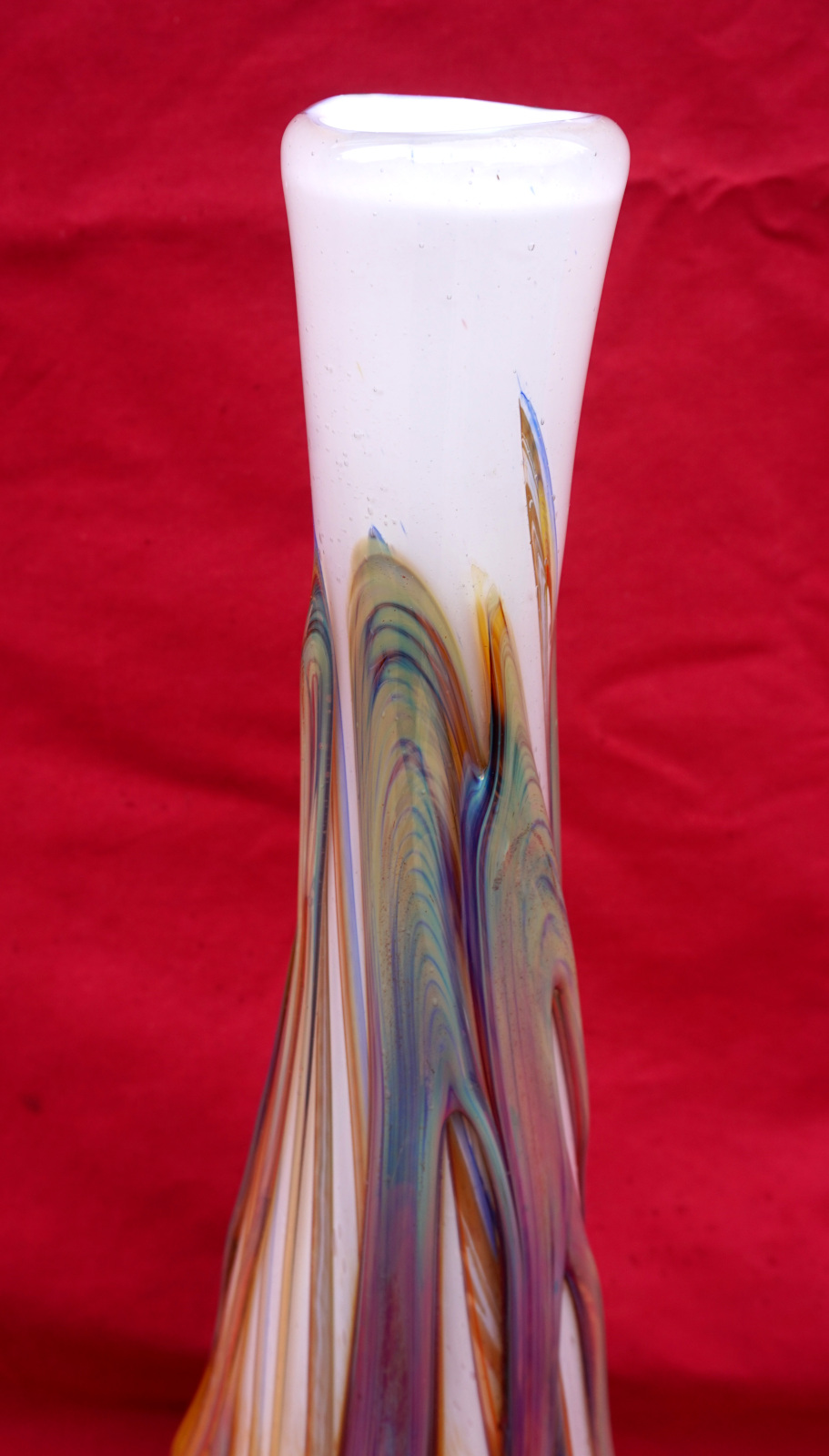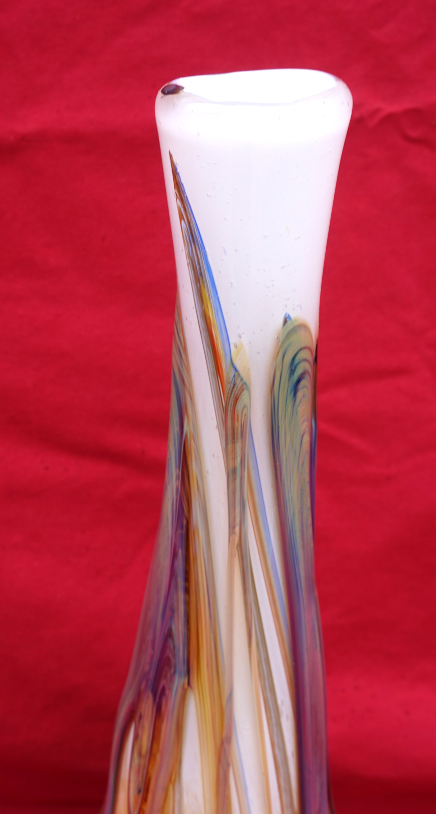 For our French-speaking friends Grand vase en verre soufflé à inclusions par Dider Saba maître verrier Antibes (Biot), signé sur son fond. Hauteur 37.5 cm, diamètre à la base 10.8 cm, poids 1.146 kg. Parfait état.