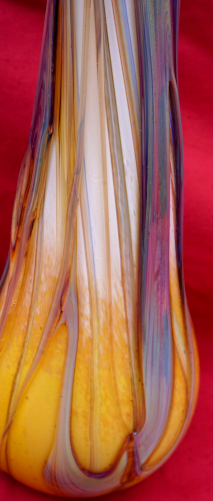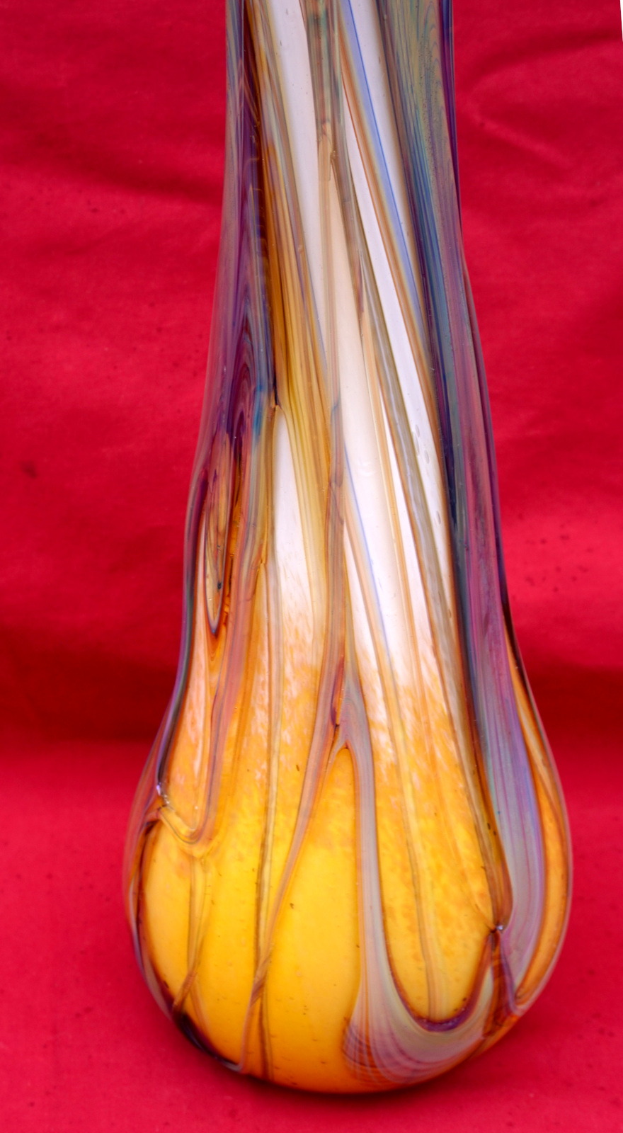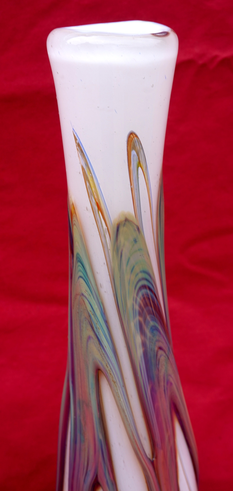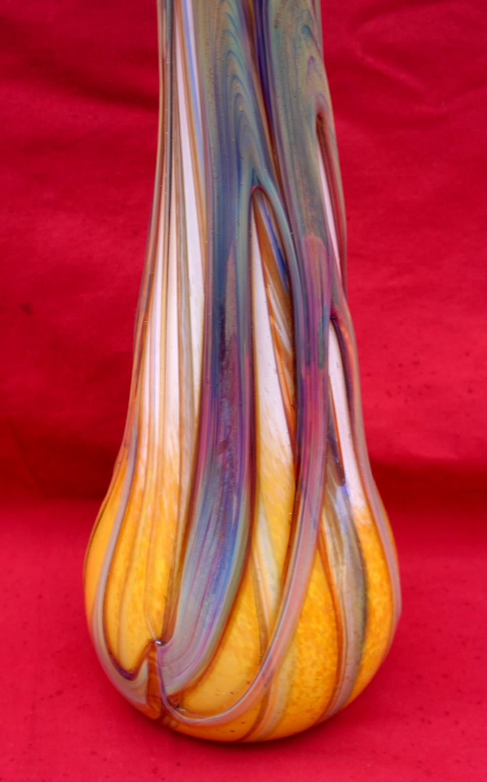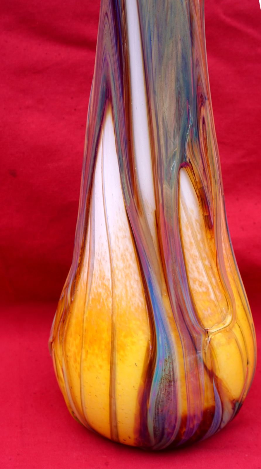 FrenchArt Glass hand blown studio iridescent glass large vase made by Didier Saba in Biot Provence. It's signed on the bottom. 14 3/4" (37.5cm) height, 4 1/4" (10.8cm) diameter to the base, weight 2lb 8oz (1.146 kilograms). Perfect condition as shown by the