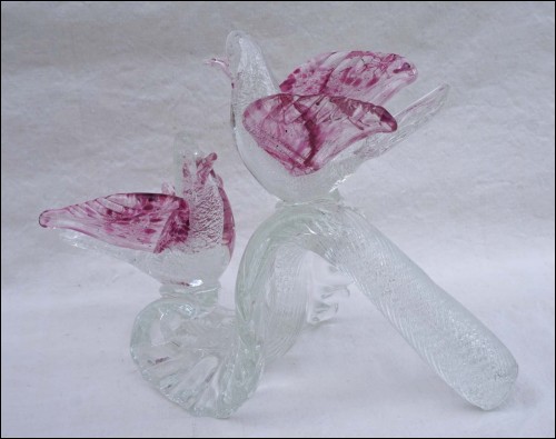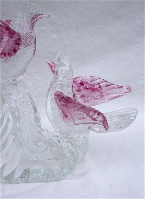 FLAVIO POLI Murano Couple Of Doves Art Glass 1950