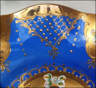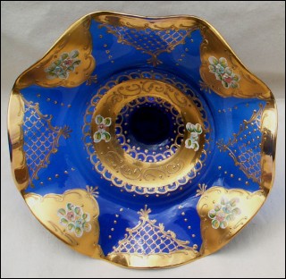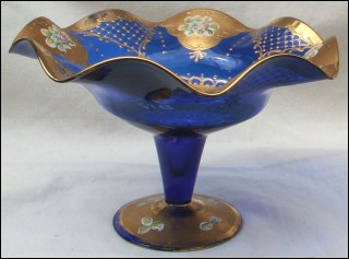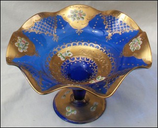 Footed Scalloped Dish Gilt Cobalt Egermann Czech Art