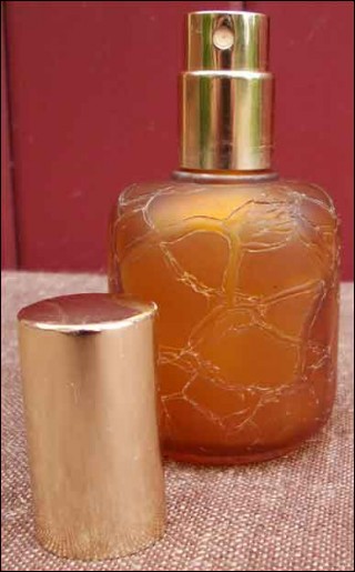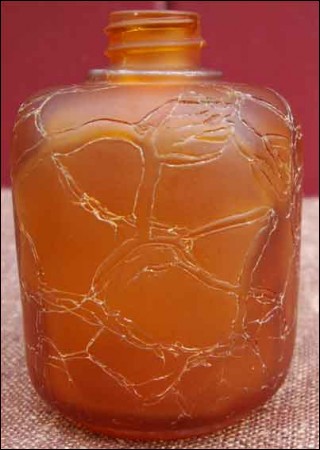 For our French-speaking friends Vaporisateur de parfum en verre ambré et craquelé de Marcel Franck. Très bel état. Hauteur 10,3 cm diamètre 4,5 cm.
