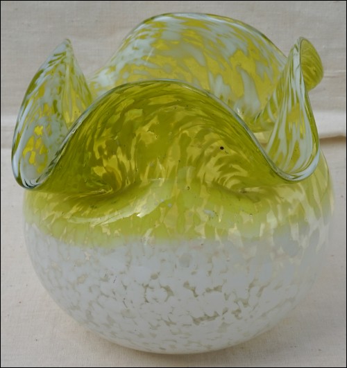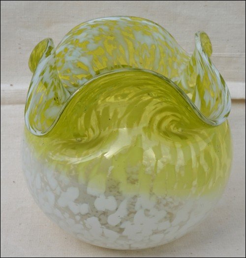 Ludwig Moser Ruffled Ball Vase Spatter Glass Bohemian 1920