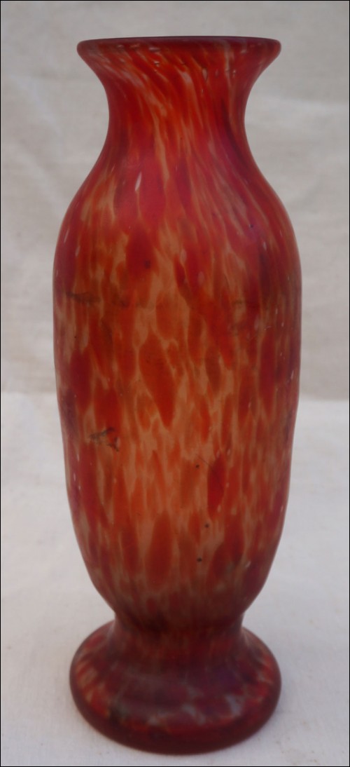 Vase Loëtz en verre de Bohème par Rindskopf, forme au catalogue dès 1915. La pâte est légèrement bullé et de couleur rouge camélia, il est en bel état, juste une petite égrenure au col, pontil meulé sue son fond. Hauteur 22,5 cm.
