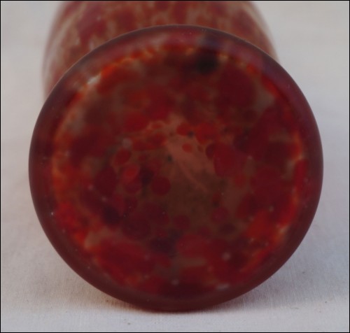 Art Deco bohemian camellia red glass vase made by Rindskopf studio of Loetz in 1915. The vase is mentionned in the 1915's catalog. Good condition, a small chip inside the edge and the pontil is grinded. 8 7/8" high.