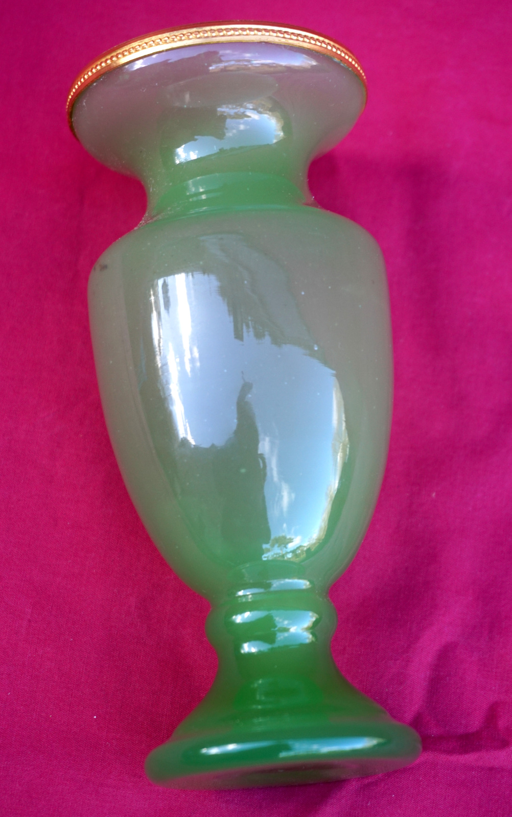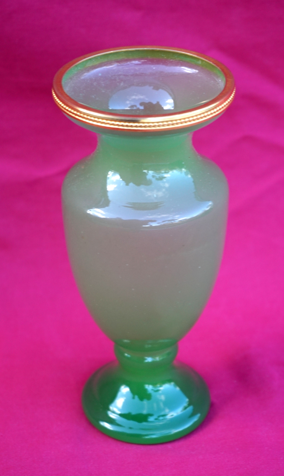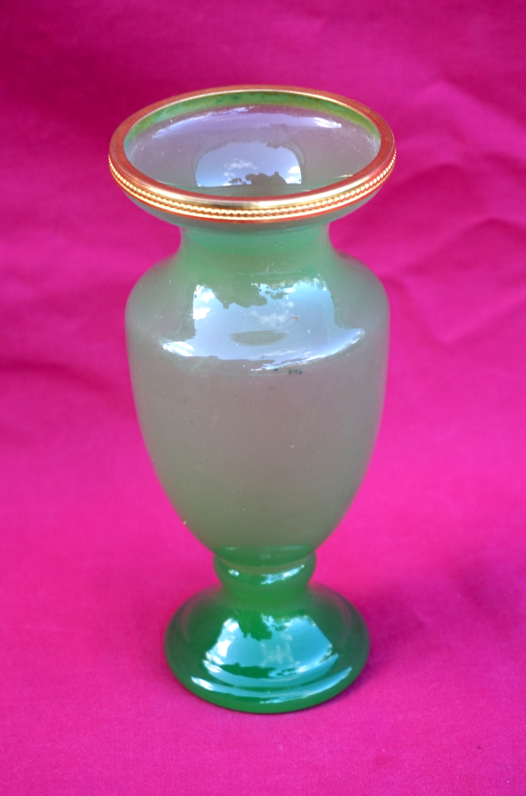 SAINT LOUIS Opaline Green Crystal Ormolu Glass Vase 19th C