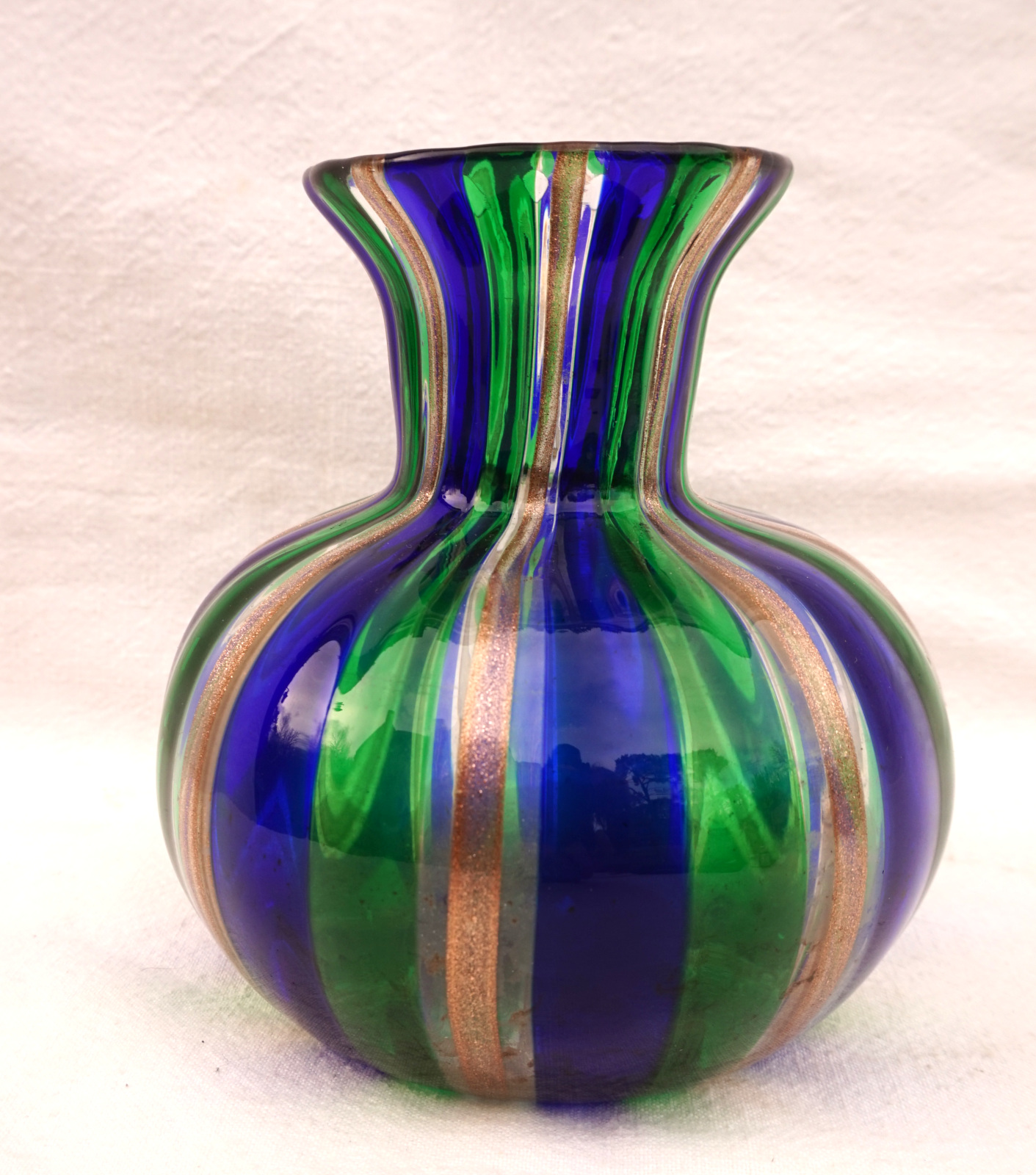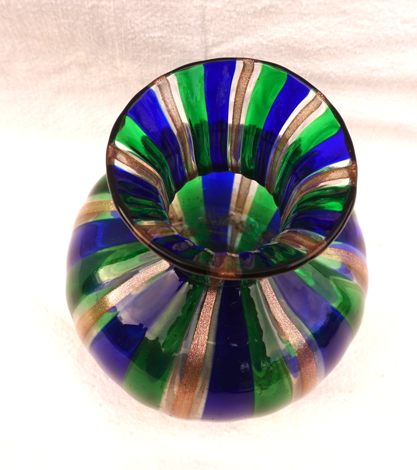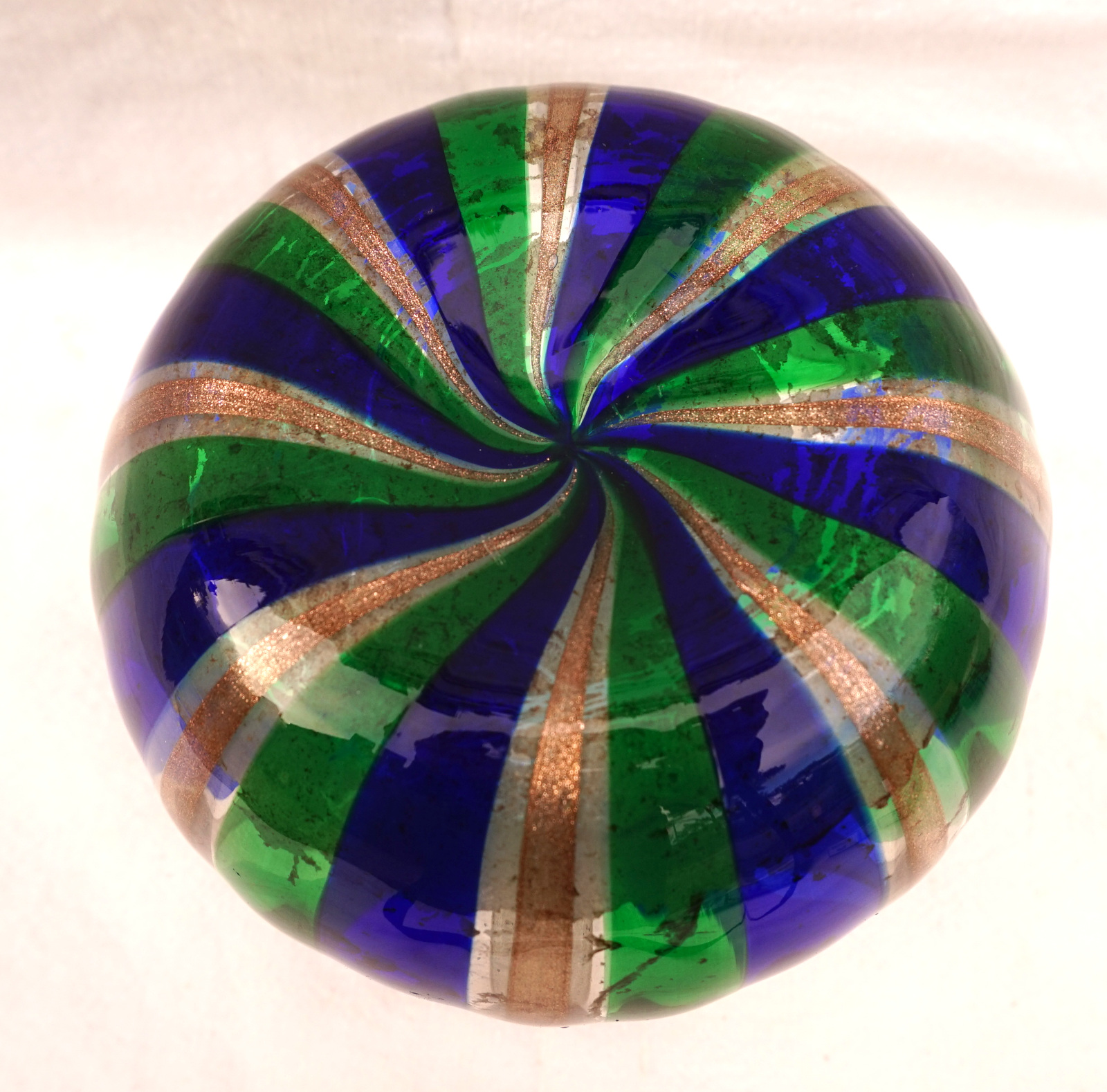 Vintage Venini Art Glass Gio Ponti Ball Vase Blue Green Gold 1950's
