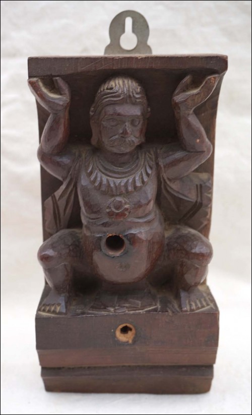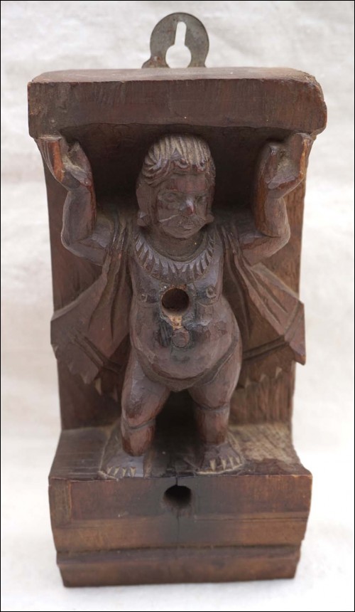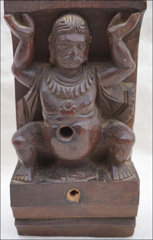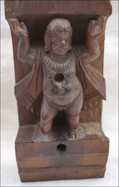 Pair of wood carved shaivism or hinduism figural elements showing two men supporting a corniche from Java island Indonesia South East Asia end of the 19th century. Good condition, 3 small parts missing on 2 hands as you can see on the pictures below. 10 1/2" high.