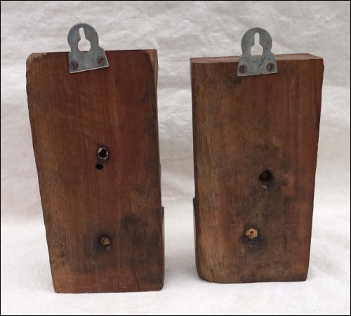 Paire de sculptures en bas relief shivaïtes ou hindouistes de Java, élément de décors d'architecture de l'ancien habitat traditionnel de l'île de Java en Indonésie. Deux hommes soutenant une corniche, partie de frise de façade en bois de teck de la fin XIXème siècle. Bon état, deux petits accidents aux mains du personnage debout et un plus ancien sur celui de gauche. Hauteur 16/17 cm.